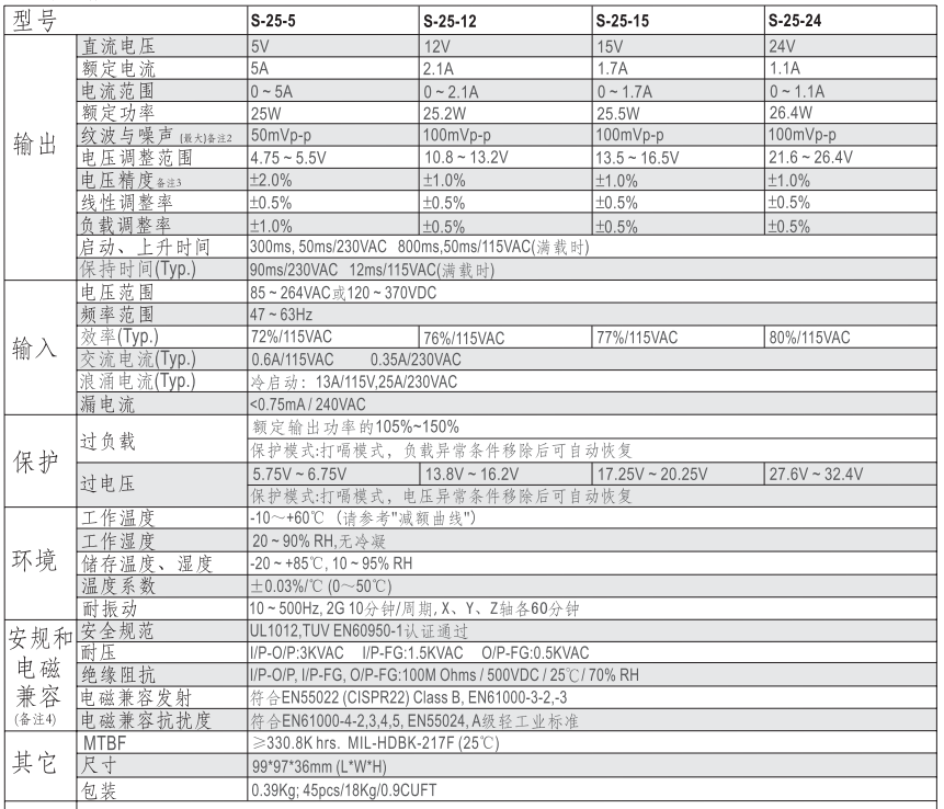 модель производительность | S-25-5 | S-25-12 | S-25-15 | S-25-24 |