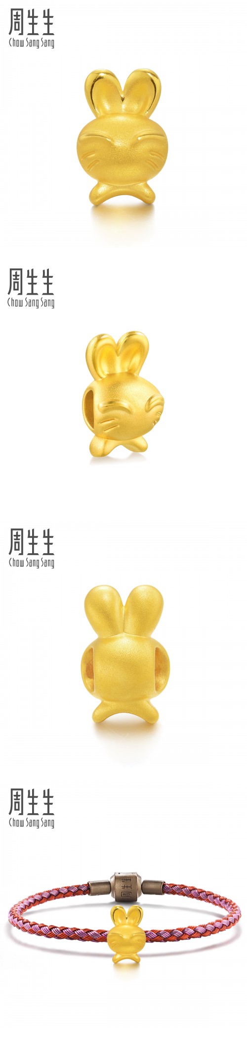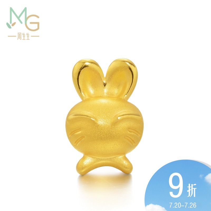 周生生 Золотой кролик, браслет с одной бусиной, оберег на день рождения с бусинами, китайский гороскоп, 3D