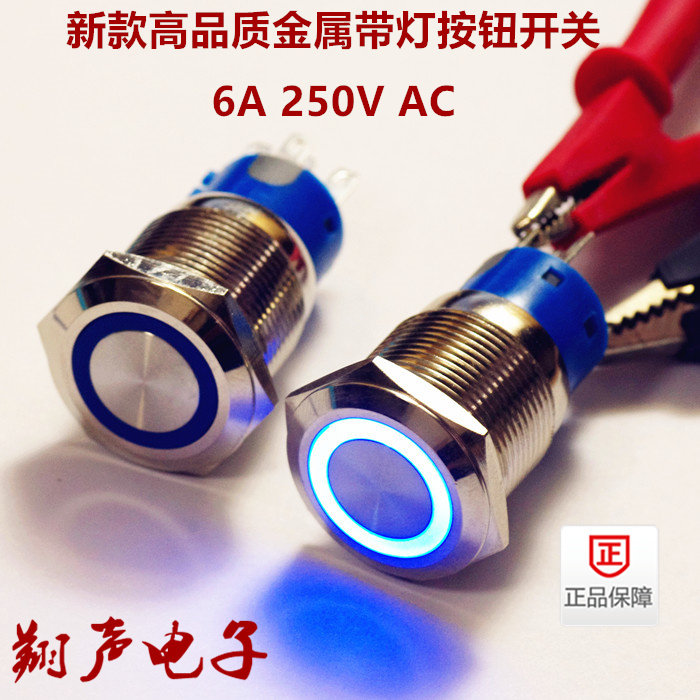 Металлическая кнопка с подсветкой, металлический переключатель, 16мм, 19мм