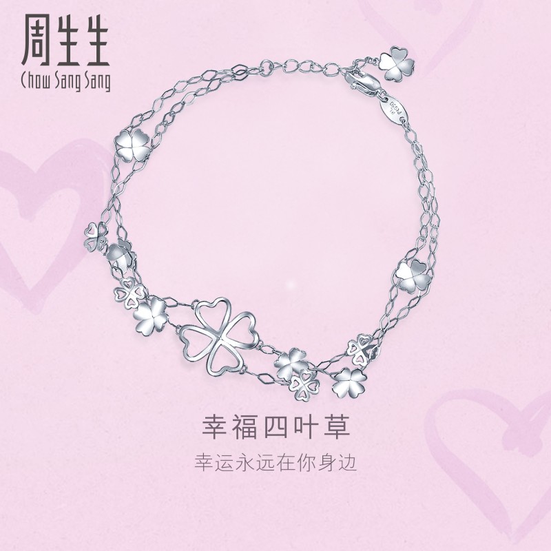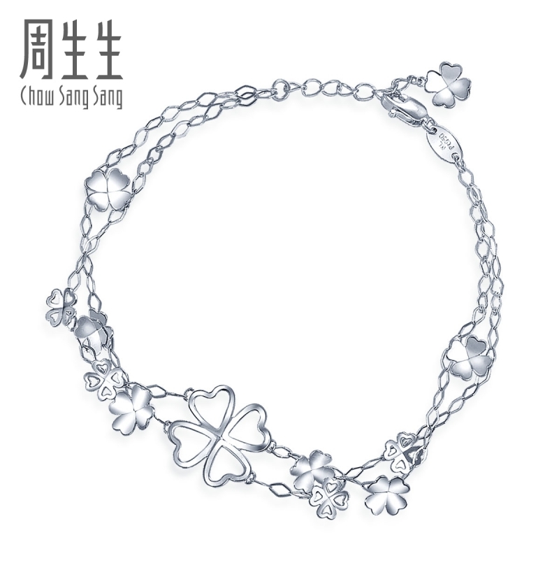 周生生 Платиновый браслет, платина 950 пробы, четырехлистный клевер