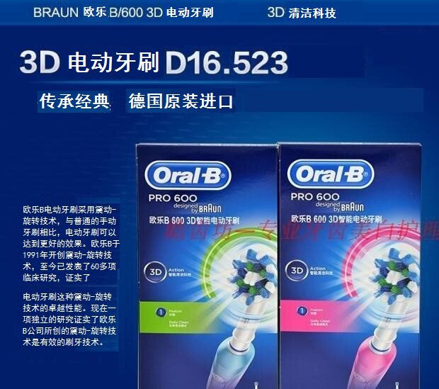 Немецкая импортная электрическая зубная щетка Oral B/oralb3D P600 для взрослых, индукционная зарядка, движущаяся пара, вращение D16