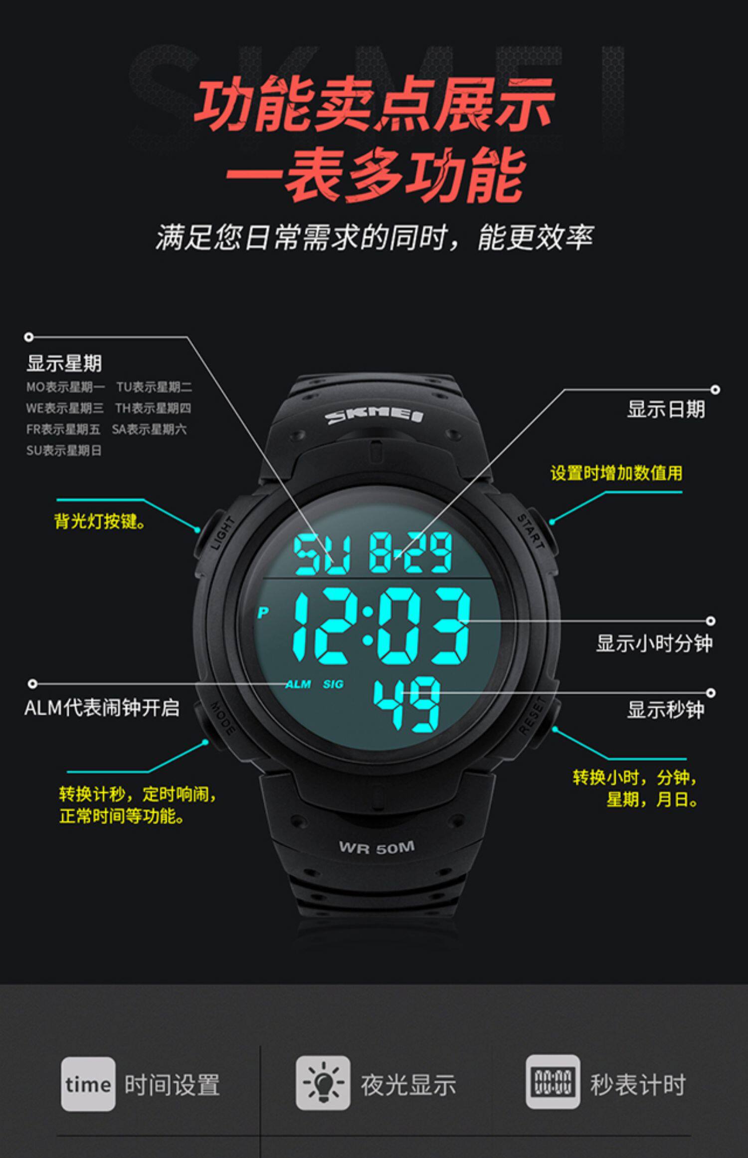 Модный трендовый циферблат, водонепроницаемые электронные дорожные спортивные универсальные часы