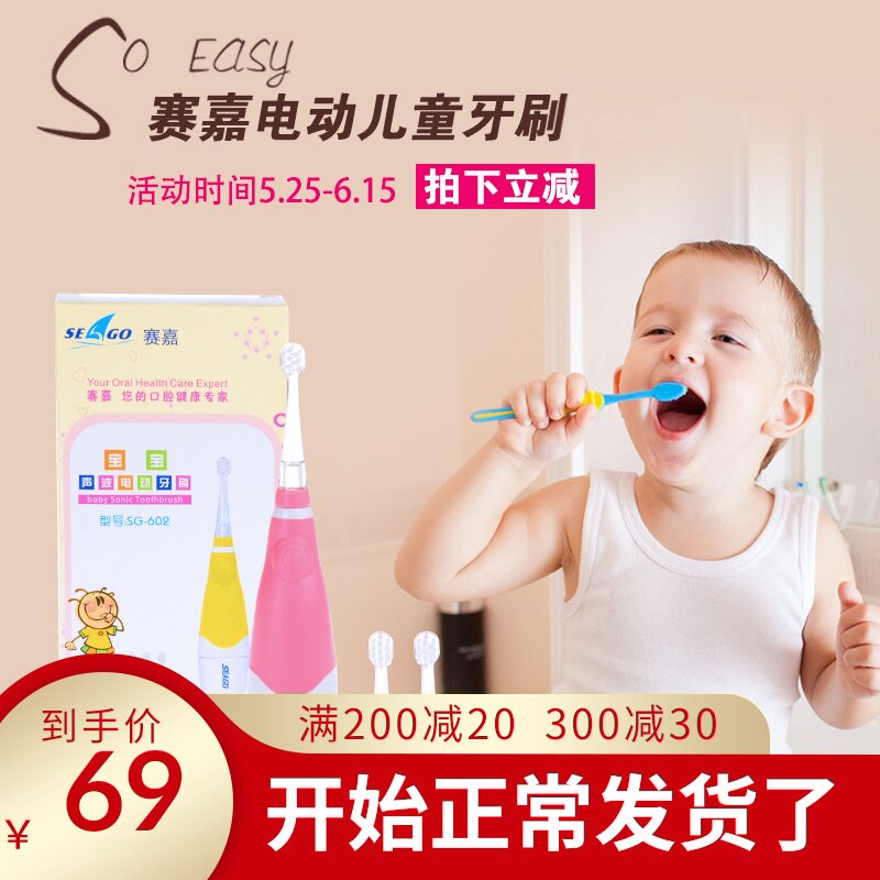 Sai Jiabao Baby Sound Waves Электрическая зубная щетка маленькая щетка - мягкие волосы, десны, десна светодиод