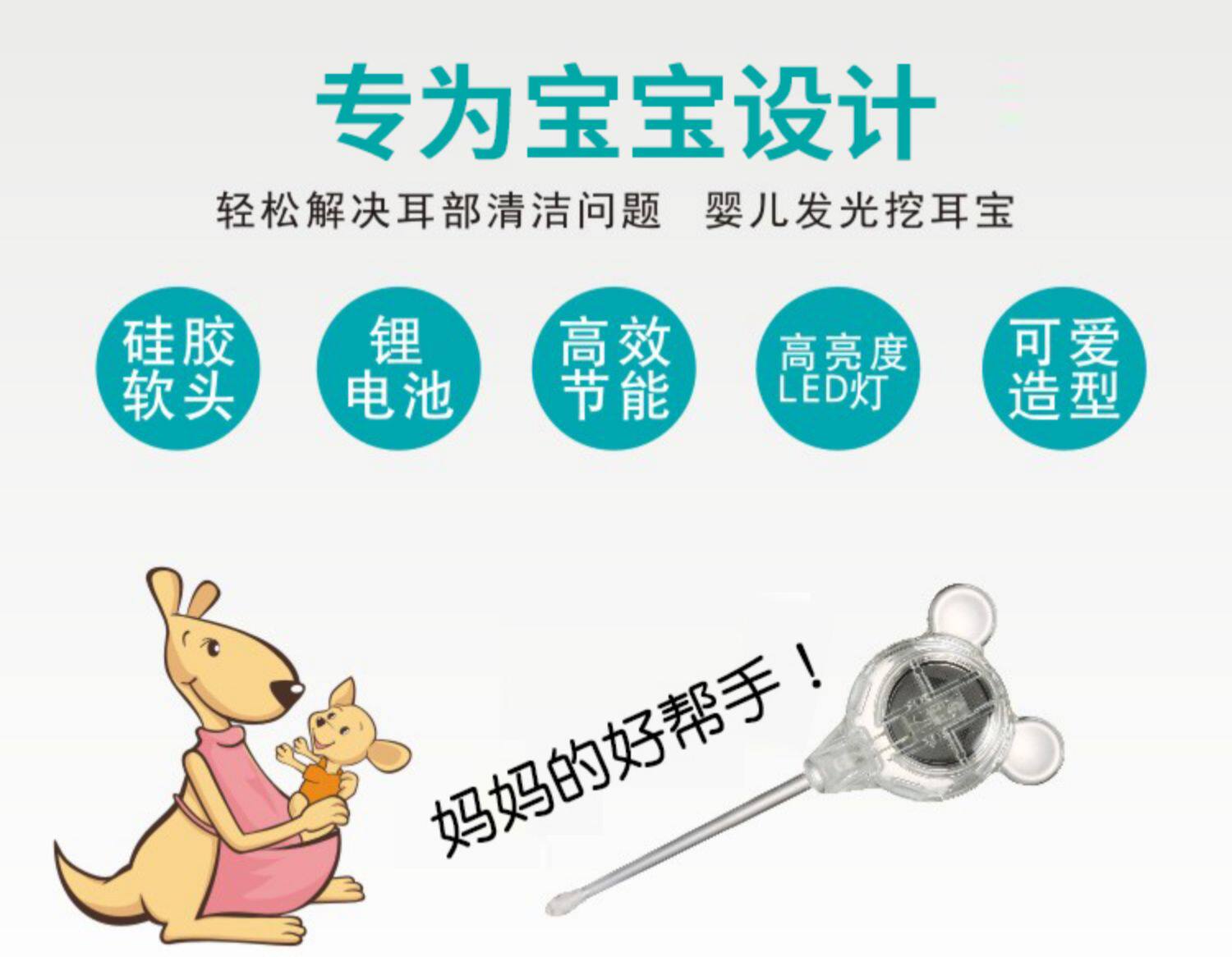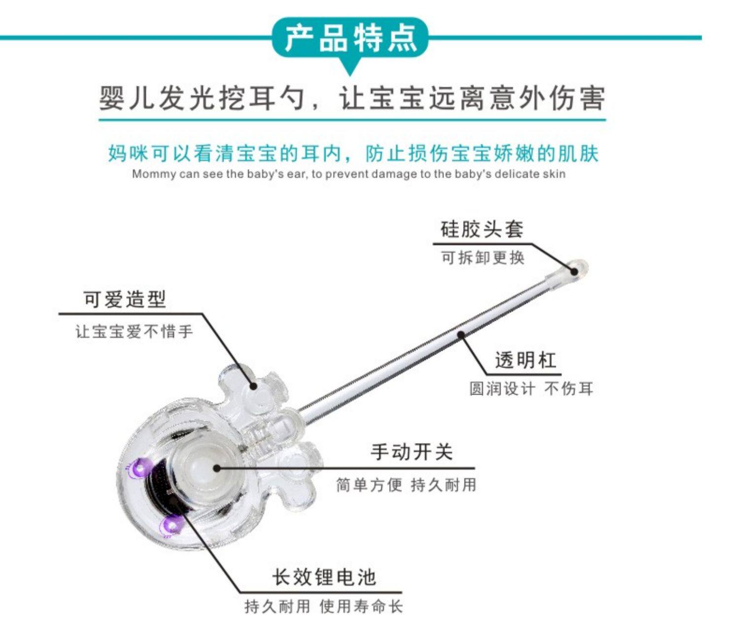 安配 Светящаяся ухочистка, силиконовая детская безопасная повязка на голову