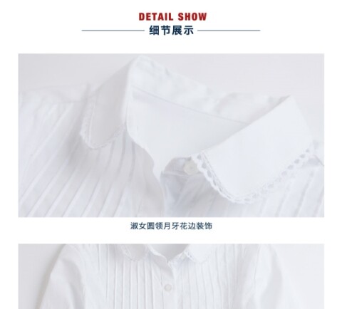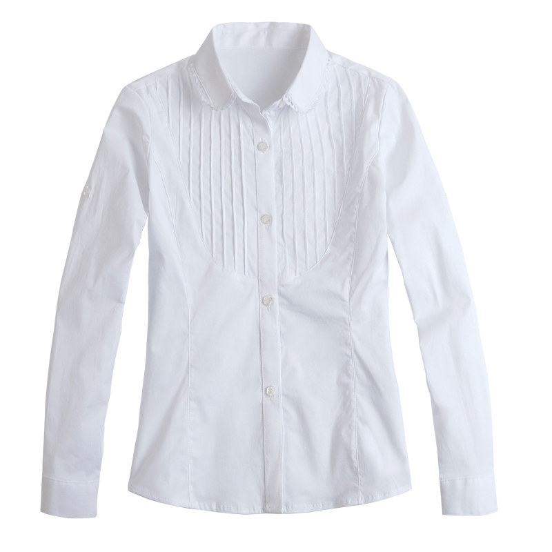 Форма, белая хлопковая рубашка с круглым воротником для школьников и студентов