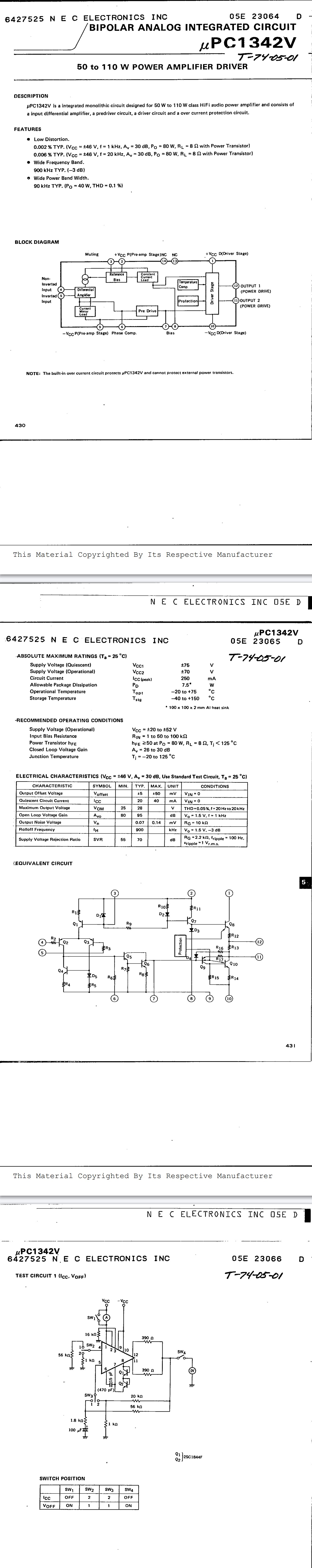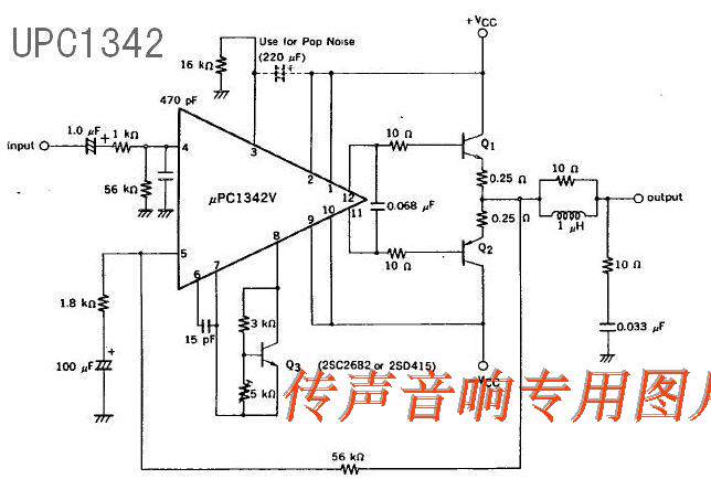 После того, как NEC имеет превосходное широкополосное низкое искажение 50 Вт для продвижения Circuit UPC1225H, чтобы удовлетворить требования высокой мощности, было запущено новое поколение аудиоприводов IC-UPC1342V. Экспорт IC, за исключением всех преимуществ и основных периферийных цепей UPC1225H , его выход, отклонение напряжения меньше (положительное и отрицательное 5 мВ), диапазон адаптации напряжения шире (положительный и отрицательный 20 ~ положительный и отрицательный 70 В), а мощность более распространена.