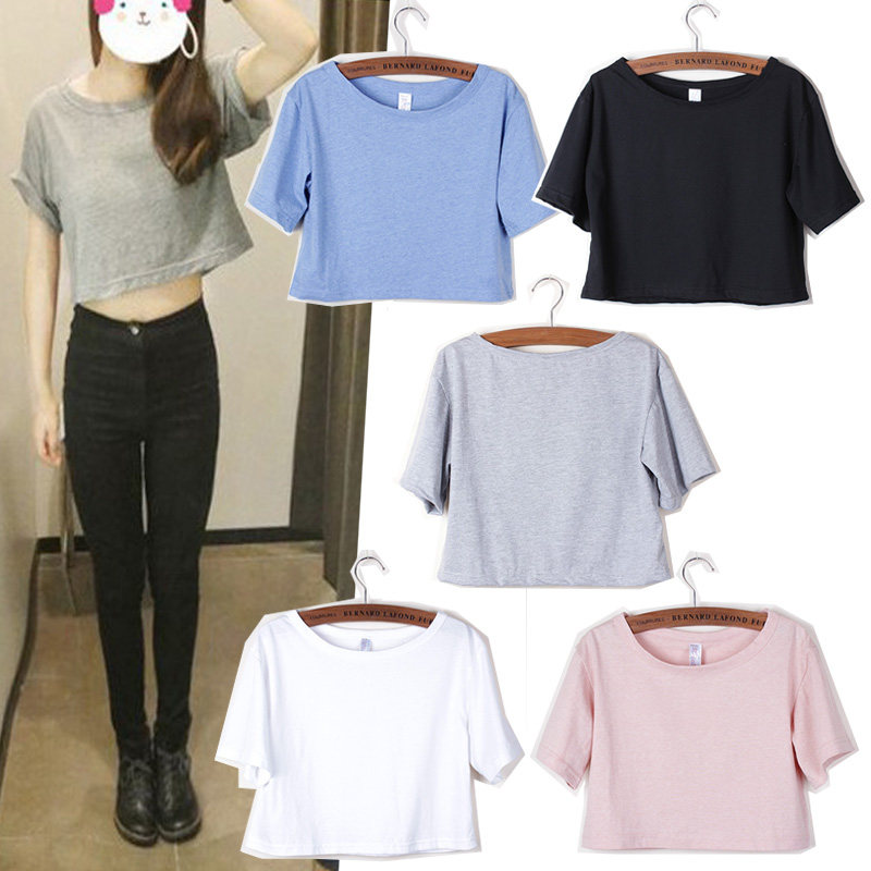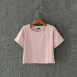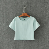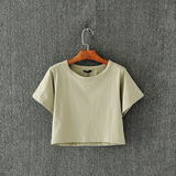 Летняя ретро однотонная футболка, европейский стиль, высокая талия, свободный крой