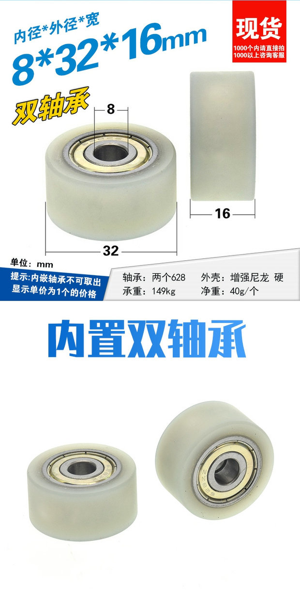 8*32*16 прорезиненный подшипниковый плоский шкив со встроенным двойным подшипником, нейлоновый пластиковый подъемный механический ролик