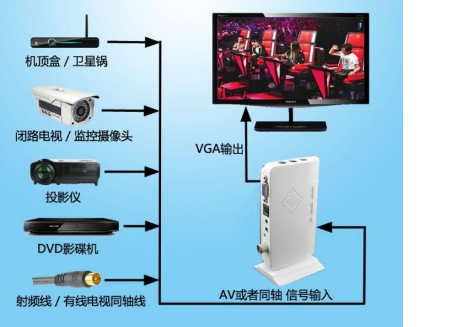 AV в VGA Top Box Top Box Display Смотрите телевизионный телевизор TV Signal в VGA с динамиком дистанционного управления