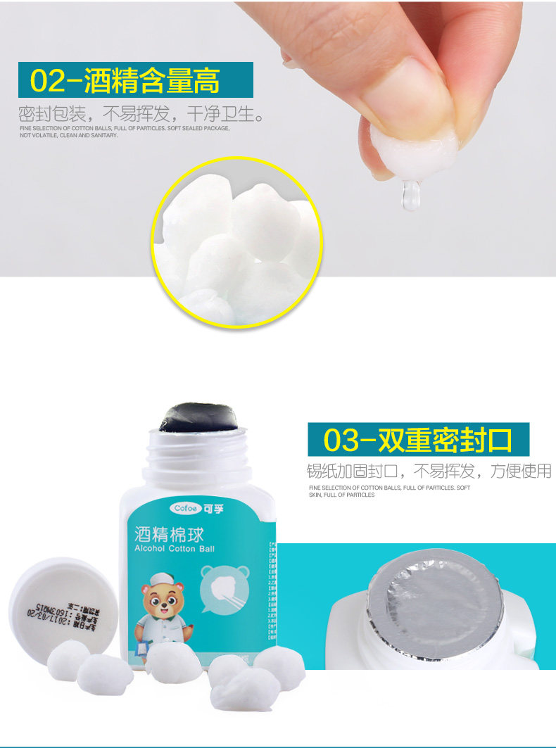 可孚 Хлопковые шарики для домашнего использования, антибактериальные ватные диски, хлопковая гигроскопическая вата