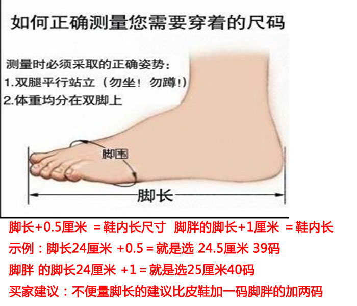 Примечание: обувь этого магазина находится в пределах стандартного расчетаРекомендуется добавить один ярд, чем обычная кожаная обувь, если ноги толстые и два ярда