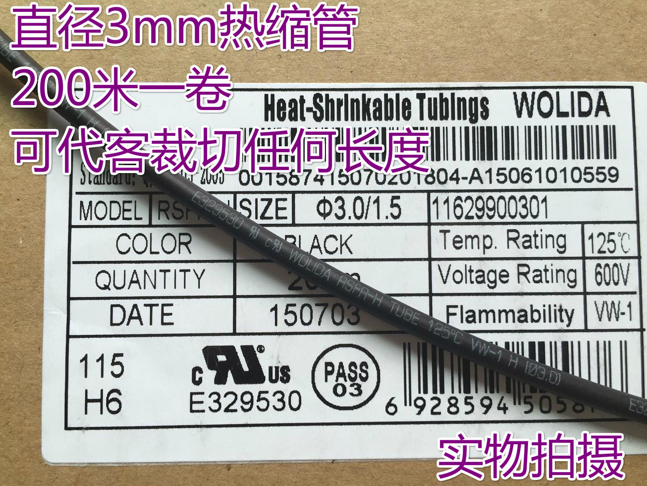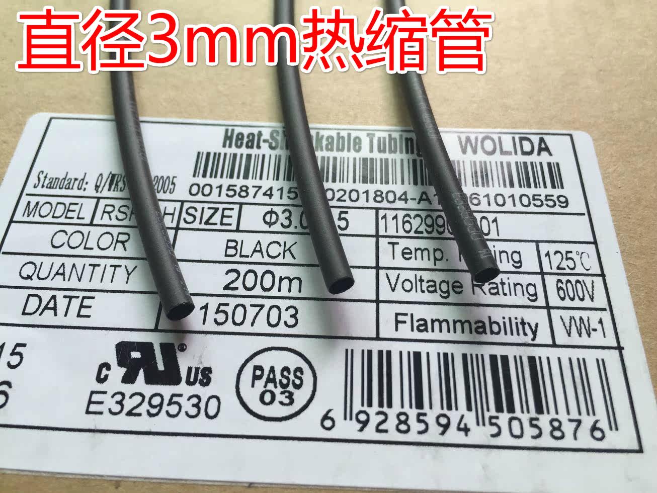 Черная термоусадочная трубка, экологичный трубчатый манжет, диаметр 3мм, 3mm, 400м