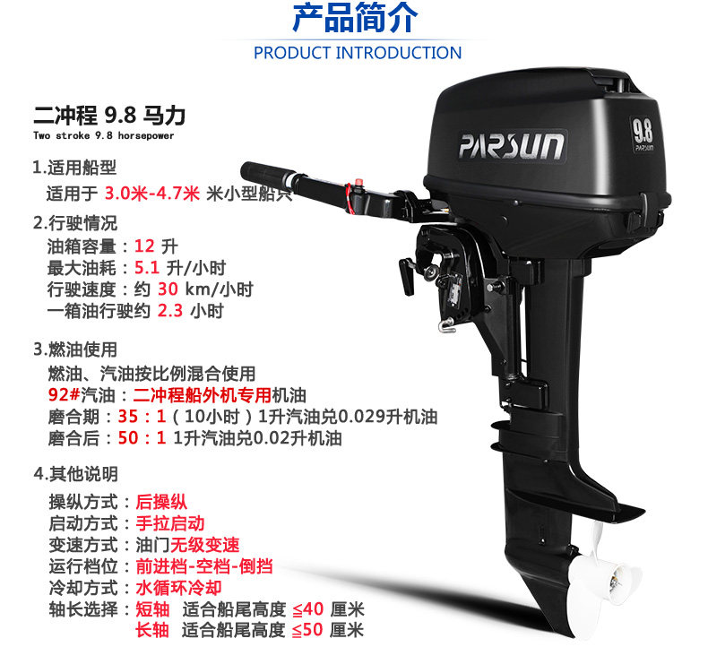 parsun Yum! Erdronepystine 9.8 Himeli Ship за пределами за пределами корабля подвесного моторного двигателя Pushinger