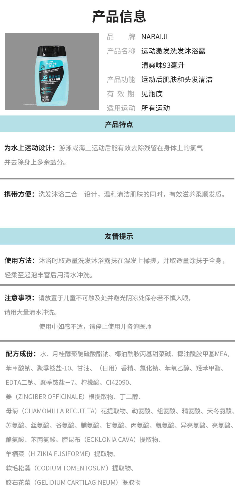Шампунь для плавания для путешествий, гель для душа, 2 в 1, 93 мл