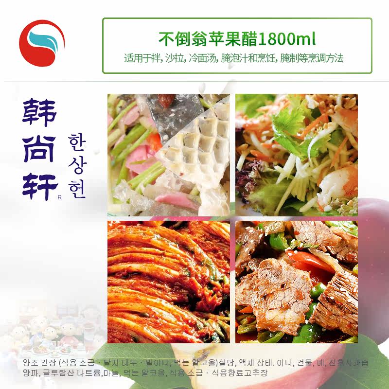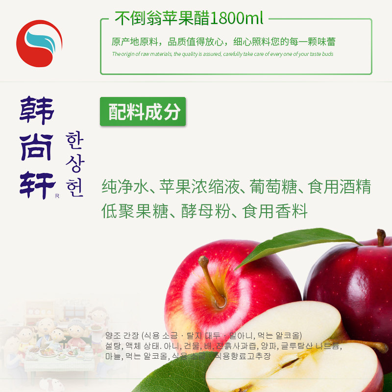 Название продукта: корейский яблочный уксус, корейский яблочный уксусСпецификация: 1,8 л/бутылка