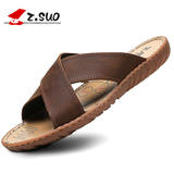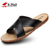 Мужские сланцы, износостойкие кожаные летние тапочки, слайдеры, большой размер