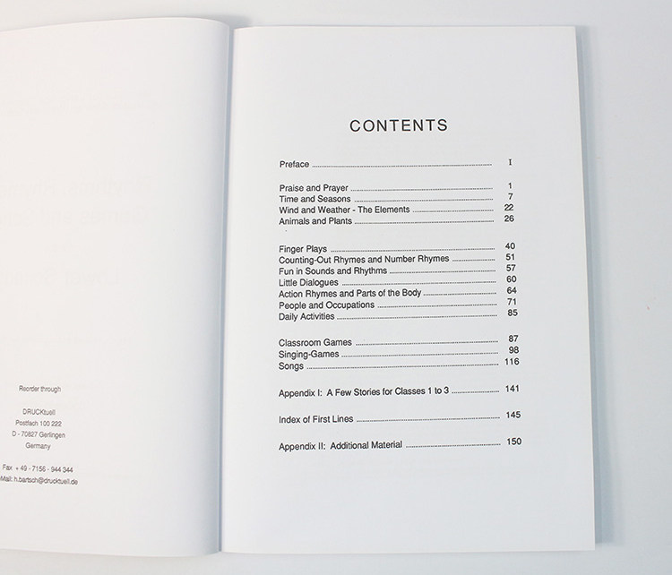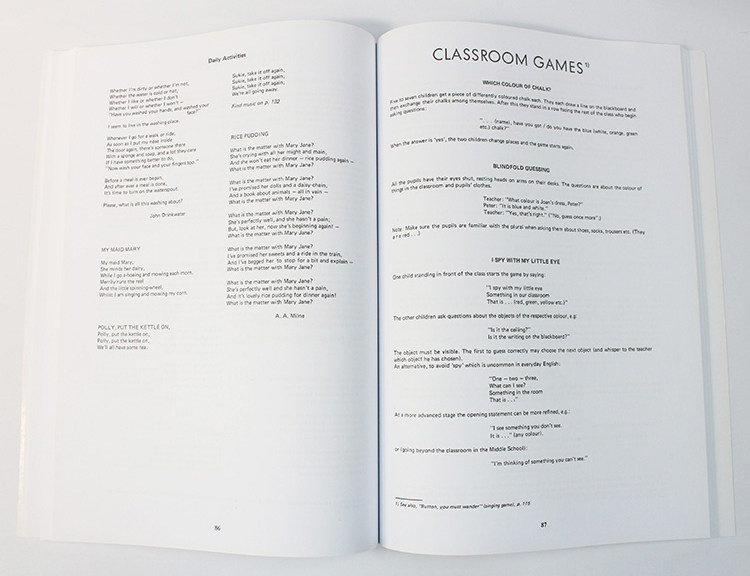 Материал, накопленный за десятилетия в рамках движения Вальдорфской школы. Для использования в первых трех (четырех) классах. Приложение с примерами особенно подходящих историй. Указатель первых строк. Более 70 пальчиковых игр, в основном сопровождаемых инструкциями, 35 классных игр, почти 30 песенных игр, около 50 традиционных английских и американских детей.’песни s, многочисленные рифмы и стихи действия.
