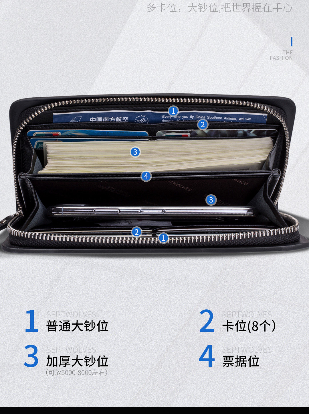 Septwolves, длинная сумка с петлей на руку для отдыха, кожаный бумажник, маленькая сумка клатч, цепочка с молнией