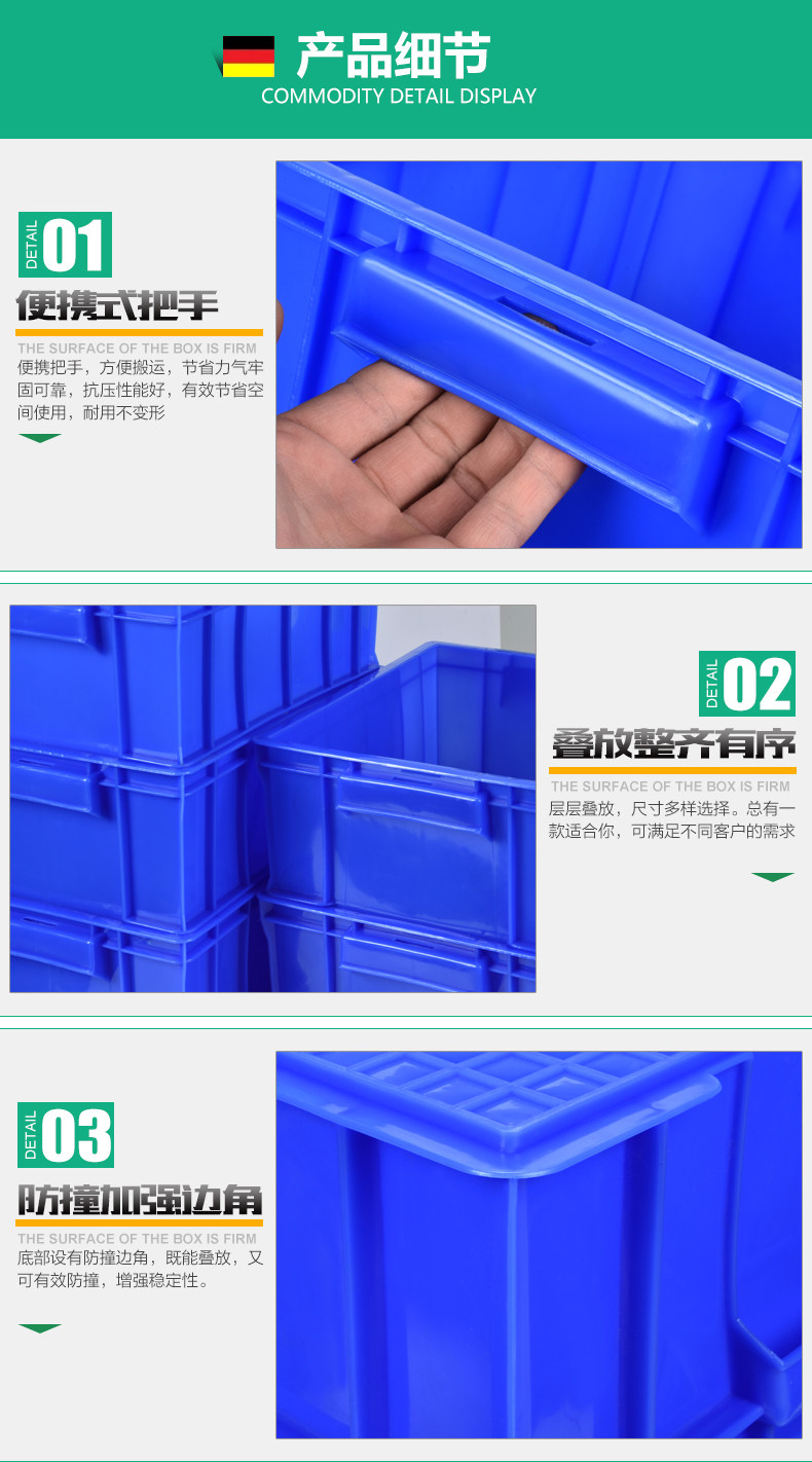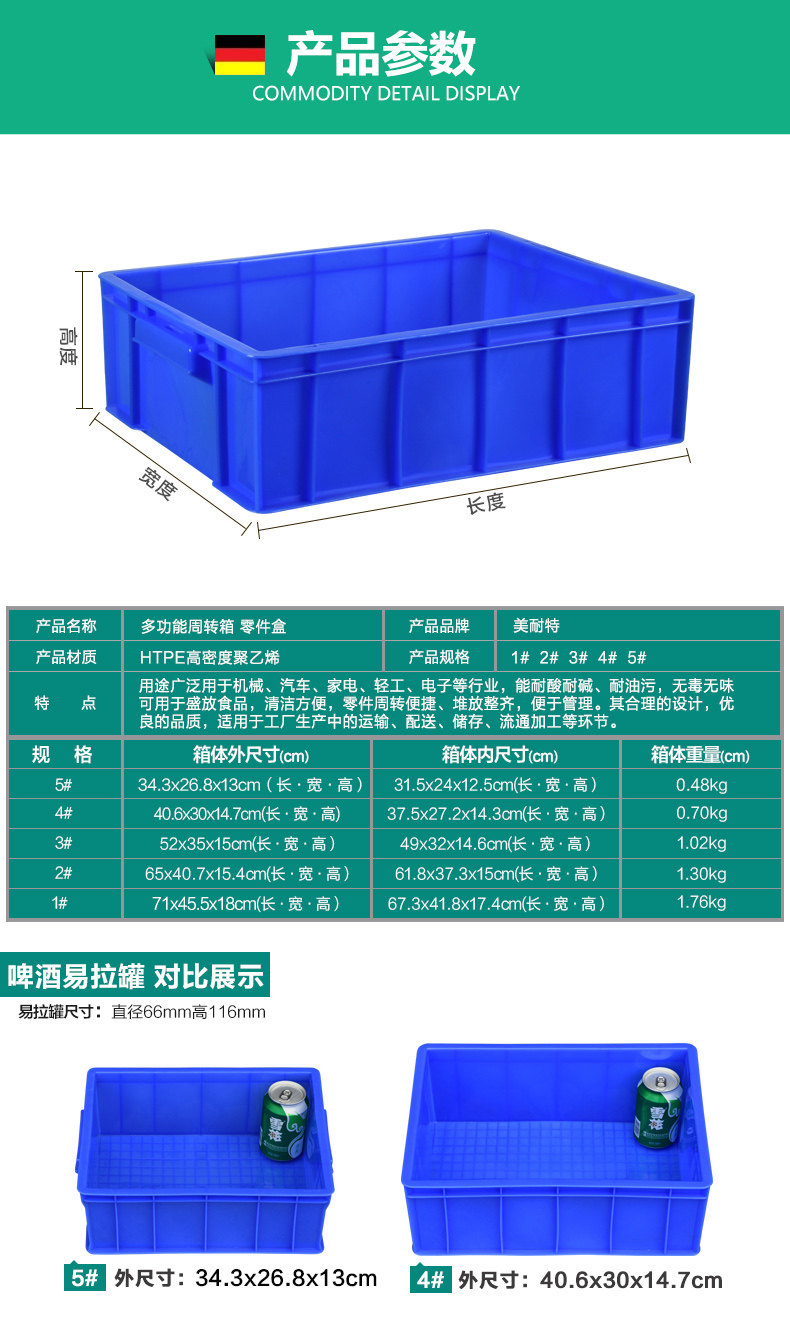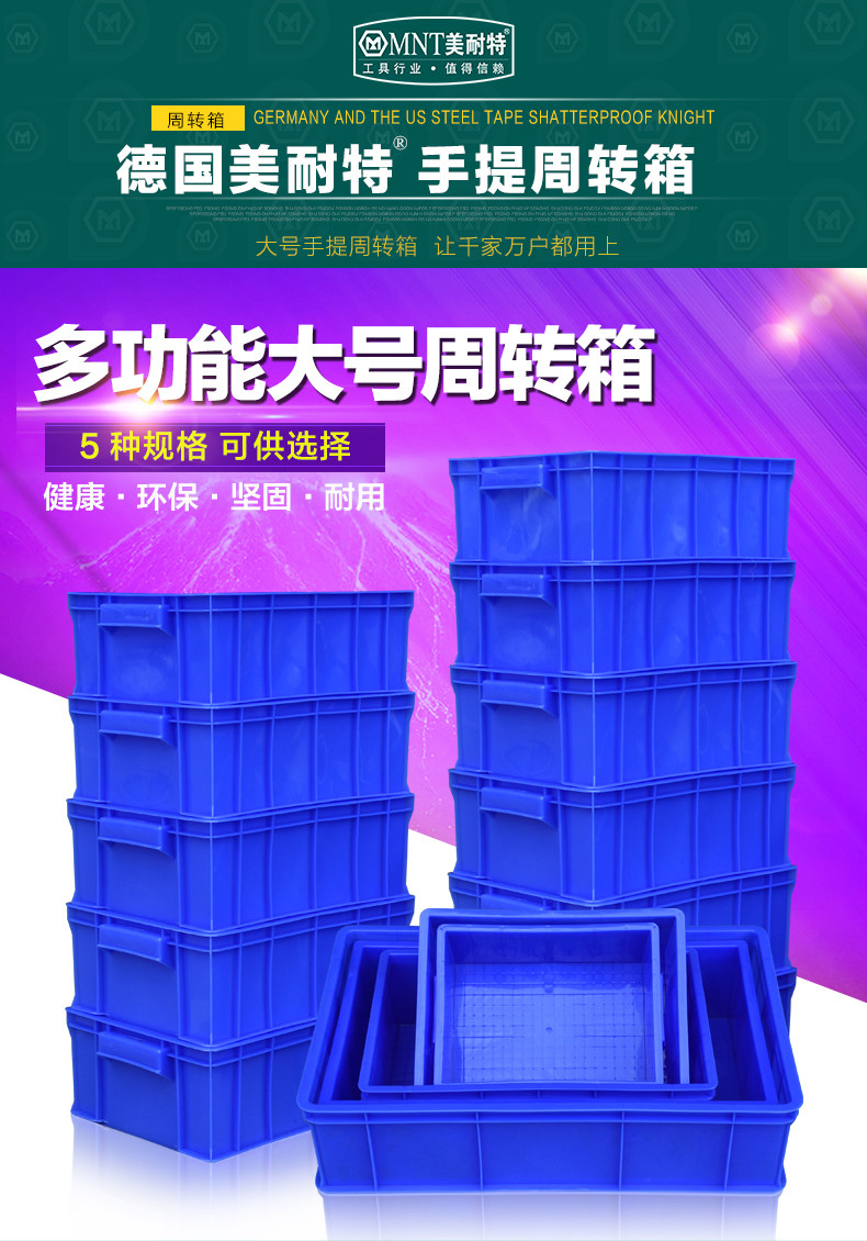 美耐特 Пластиковая коробка оборота прямоугольная коробка с утолщенной и высокая ящик с высокой клейкой коробкой для материалов.