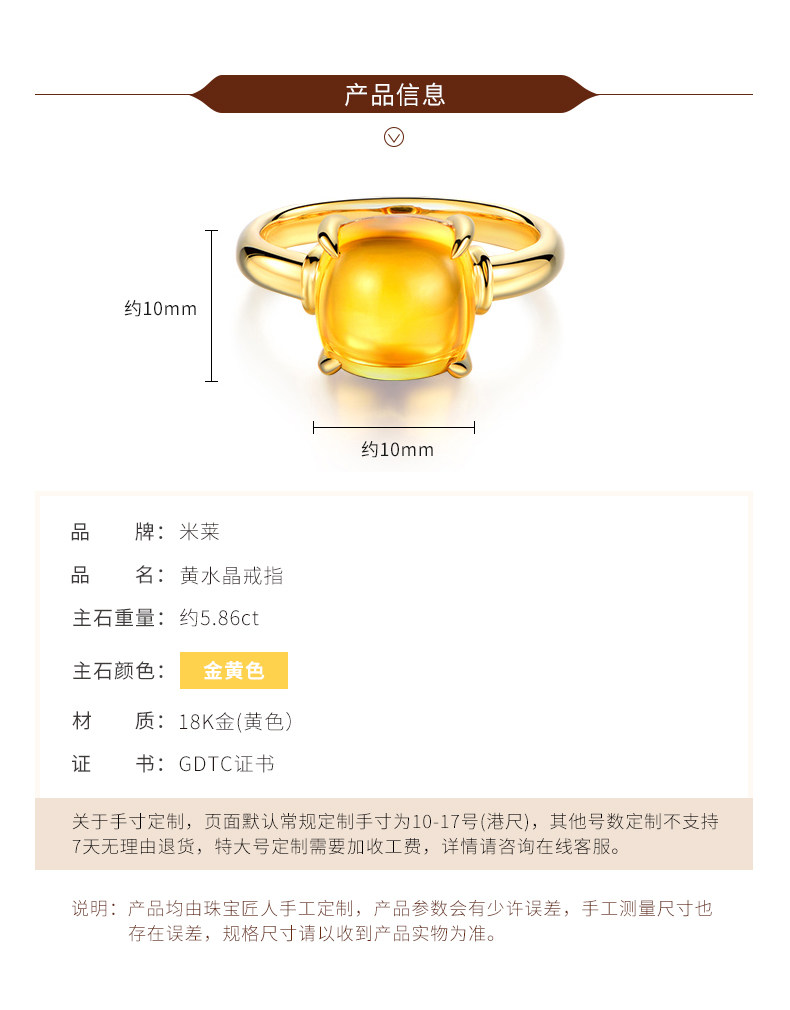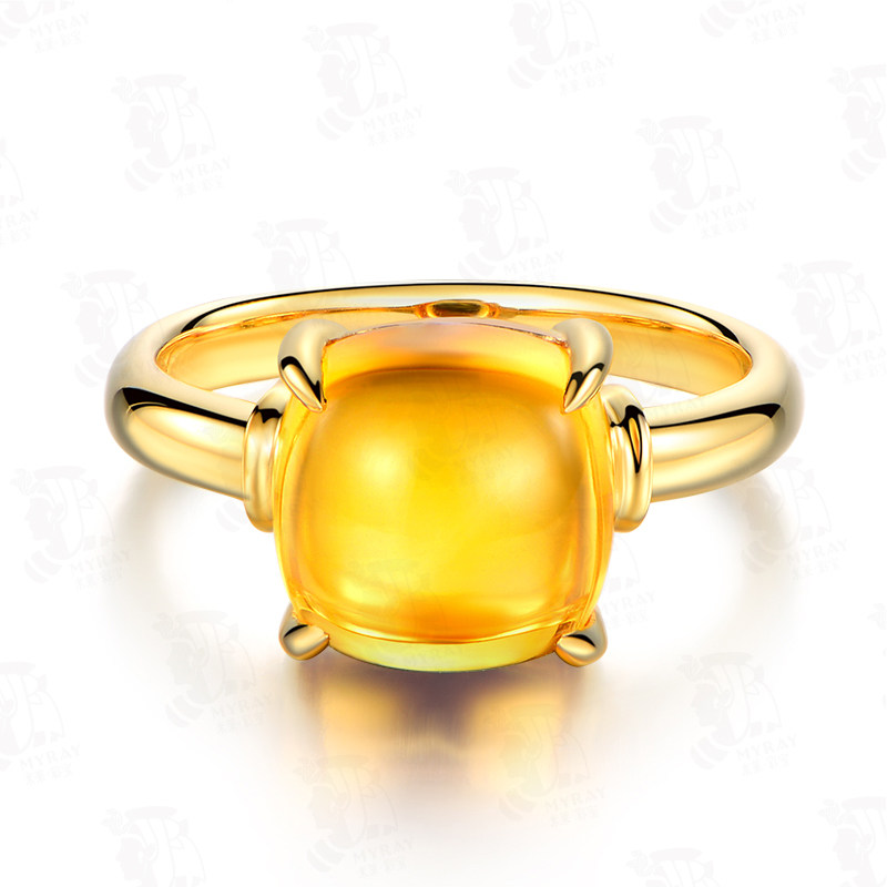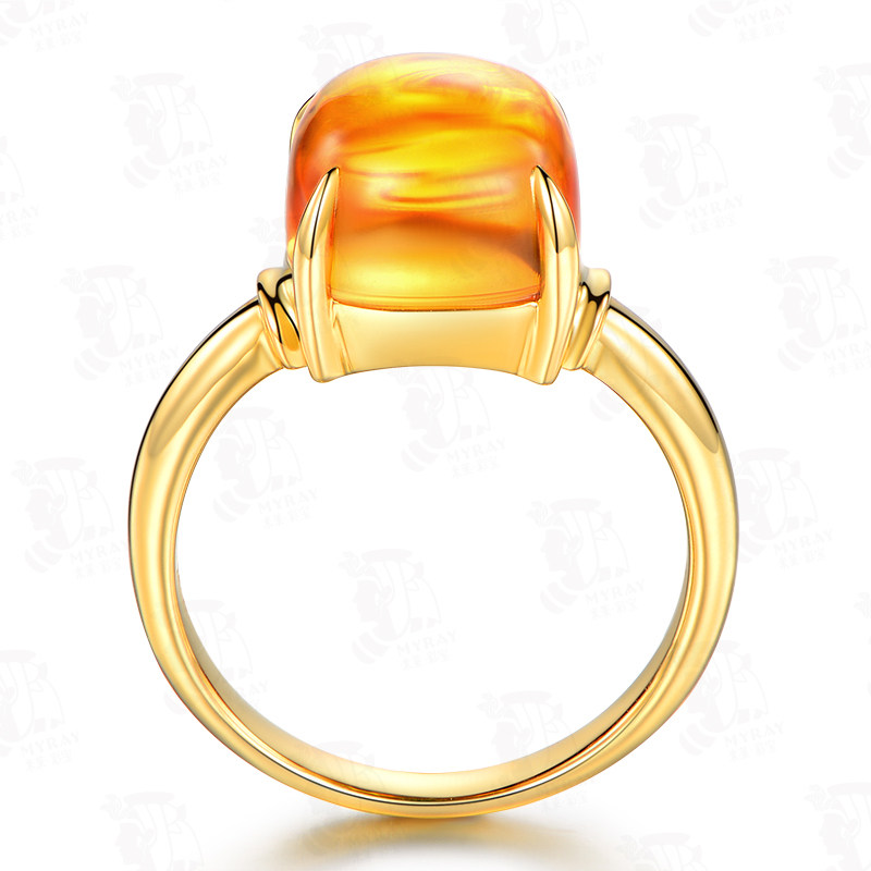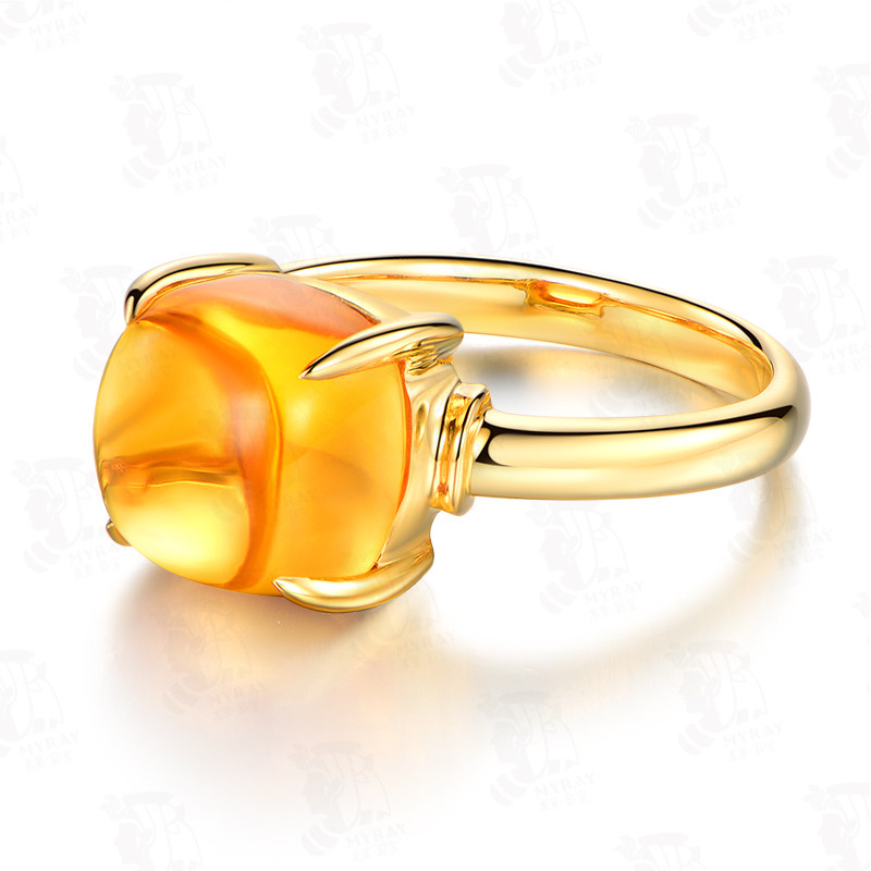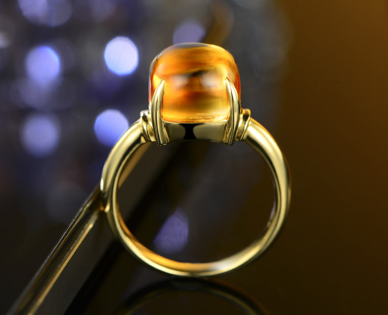 米莱 Ювелирное украшение, натуральное кольцо с кварцем, классическая инкрустация камня, 5.86 карат, золото 750 пробы, с драгоценным камнем