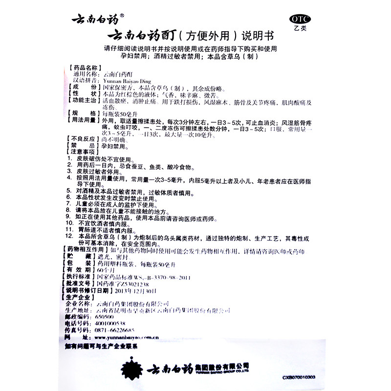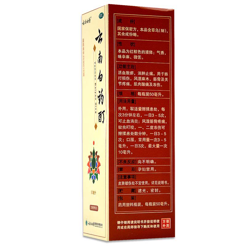 云南白药 Юньнан Байяо М 50 мл кровообращения кровообращения кровообращения, стазиса, отек, облегчения боли, мышц и костей, боль в суставах