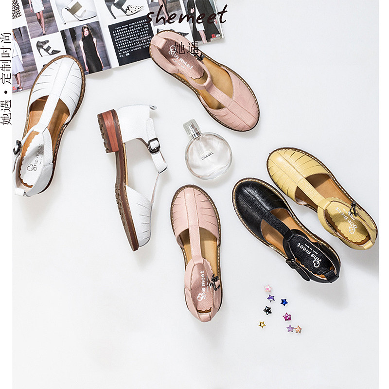 Сандалии без ног для женщин Fairy Style 2022 Весеннее универсальное толстое туфли в туфли с плоской плоской петлей.