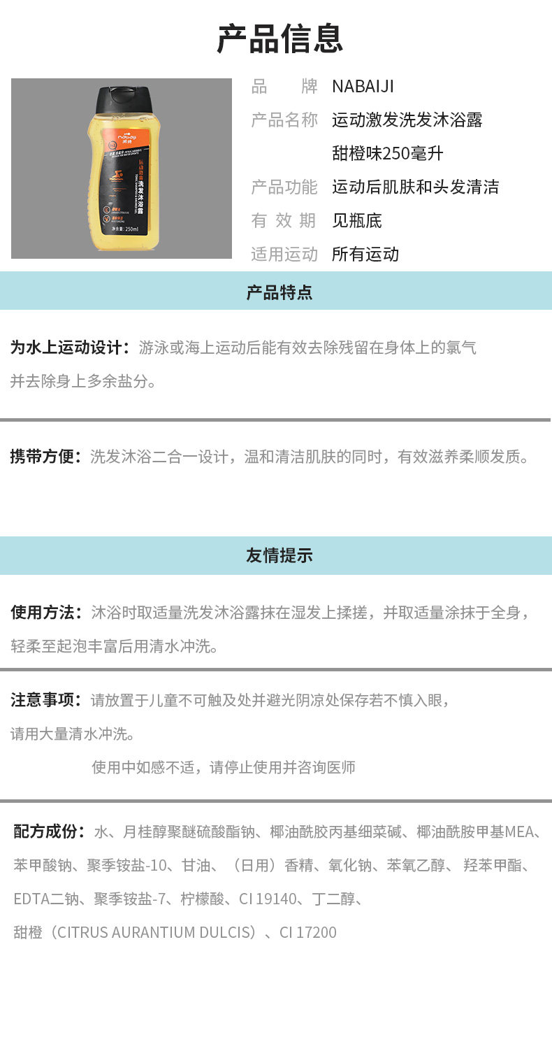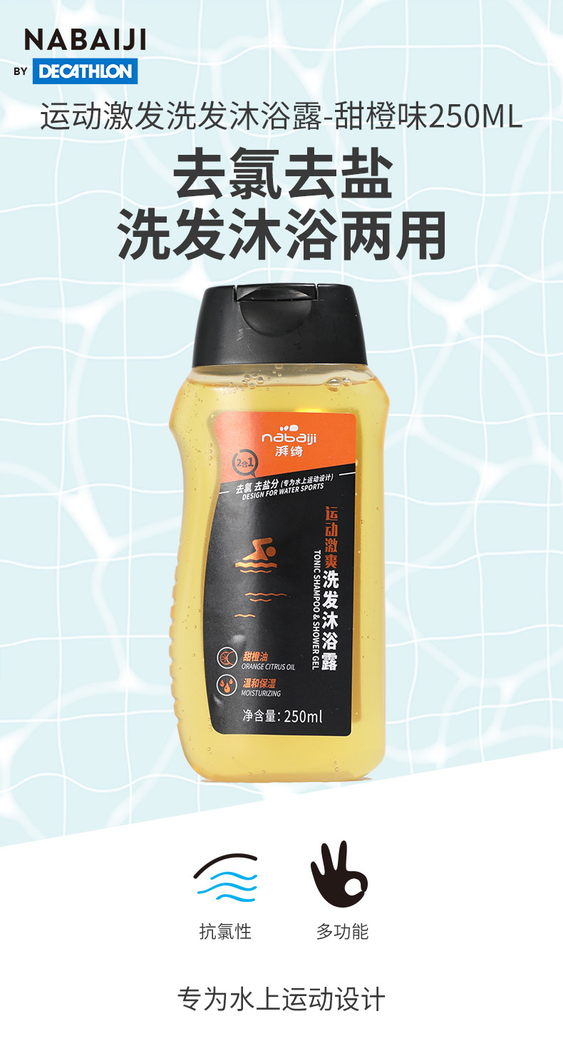 Decathlon для удаления волос с хлорным, натягивающим, душевой гель сладкий апельсин двух -в одном антихлорном плавательном активации 250mlivl3