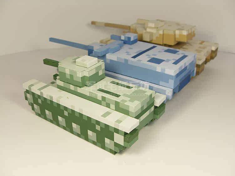 На рисунке есть набор сцен, 3 пиксельные танки, а именно скауты, могущественные, безумные солдаты