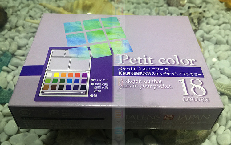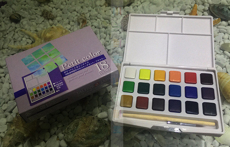 - Миниатюрный набор из 18 цветов, включая акварельную кисть.