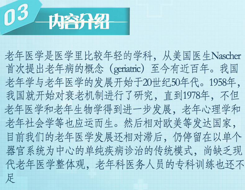 Книга имеет в общей сложности 31 главы. Содержание охватывает текущую ситуацию и тенденцию развития населения, комплексную оценку здоровья пожилых людей, клинические характеристики пожилых людей, управление здоровьем пожилых людей, разумное лекарство the elderly, the circulatory system disease, respiratory disease, Digestive system diseases, endocrine metabolic system diseases, rheumatism and immune diseases, hematopoietic and blood system diseases, nervous system diseases, senile mental disorders, urinary reproductive system diseases, gynecological diseases, skeletal joints and Мышечные и мягкие ткани заболевания, хирургия, кожа, кожные заболевания, органы датчиков, заболевания полости рта, питание пожилых пациентов, отеки пожилых людей, инфекция пожилых людей, пожилых людей, пожилые люди вмешались в диагностику и технологию лечения и минимально инвазивную хирургию, пожилые анестезии, реабилитация пожилых людей, уход за пожилыми людьми и тяжелые пациенты с болезнями, а также тяжелые пациенты с болезнями, а также тяжелые пациенты с болезнями. Идентификация и функциональная поддержка органов, гидролитический и кислотный базовый дисбаланс, комплексное лечение опухолей для пожилых людей.