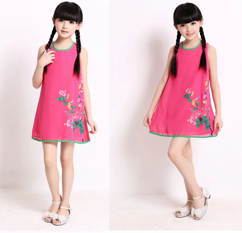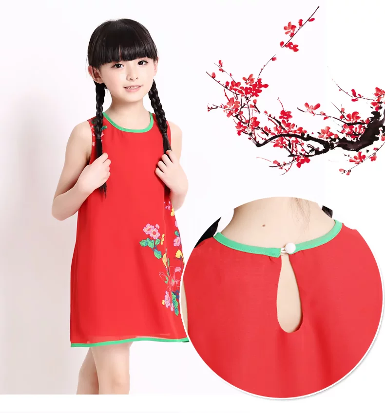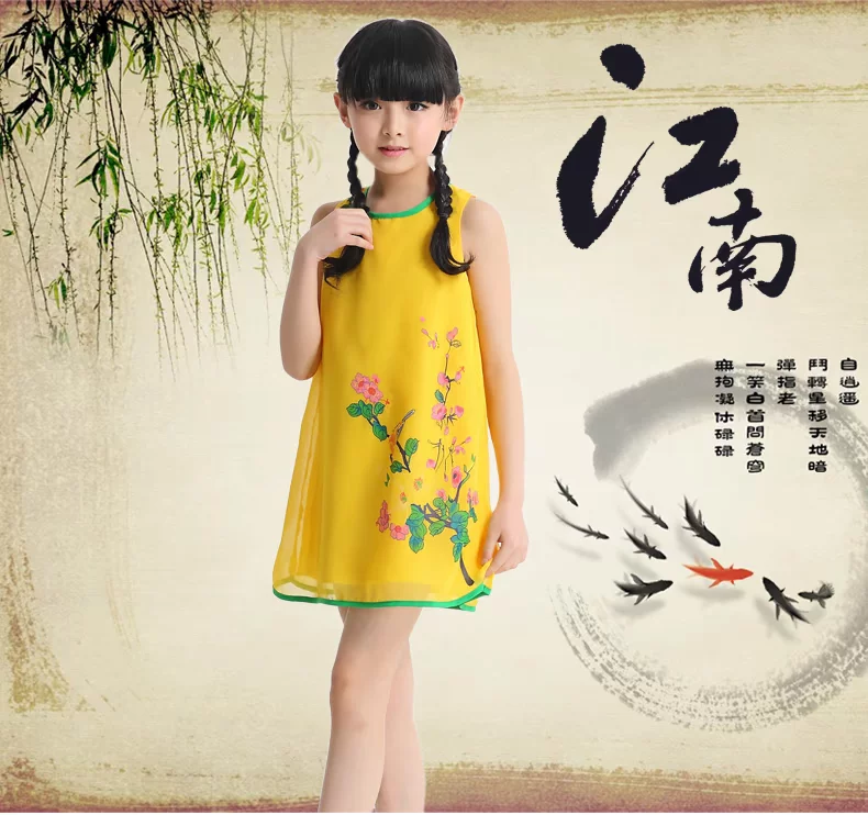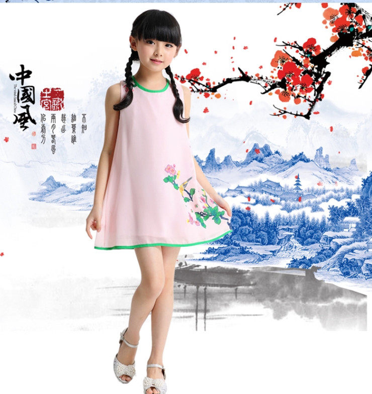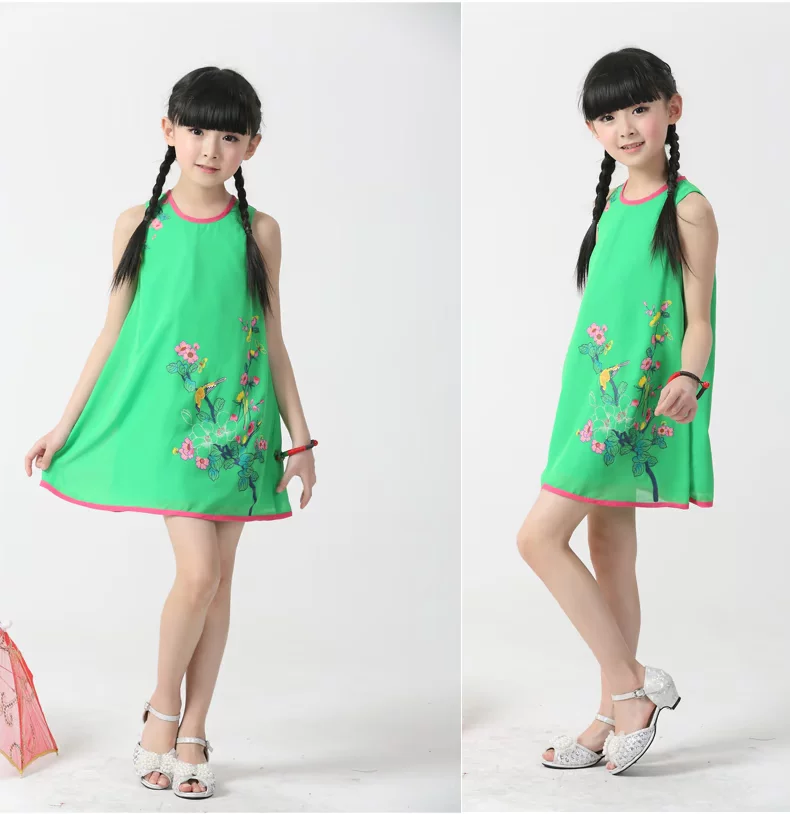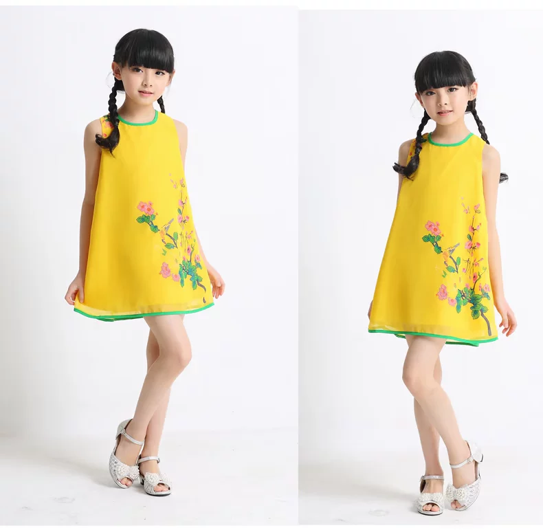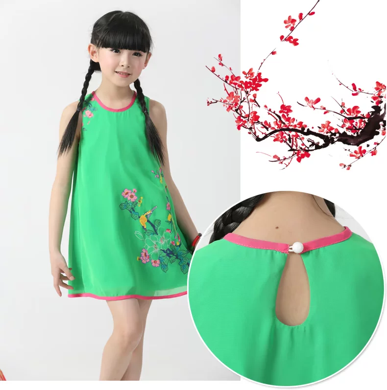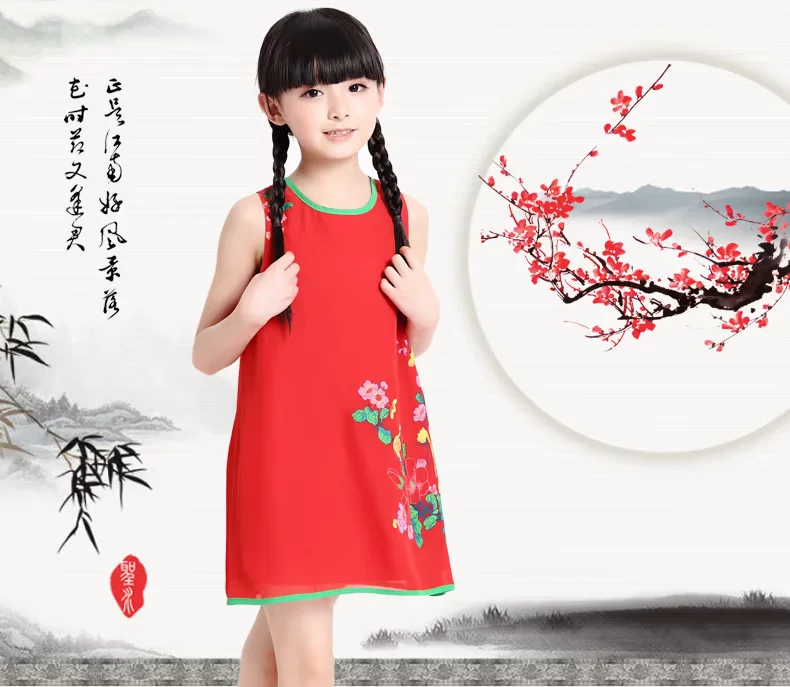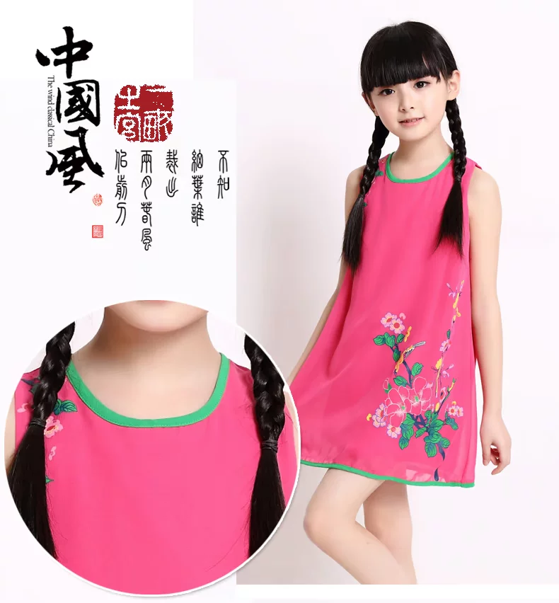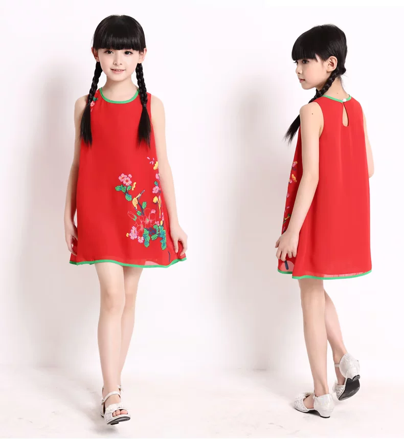 Шифоновая юбка на девочку, платье с рукавами без рукавов, мини-юбка, летний наряд маленькой принцессы, китайский стиль, подходит для подростков