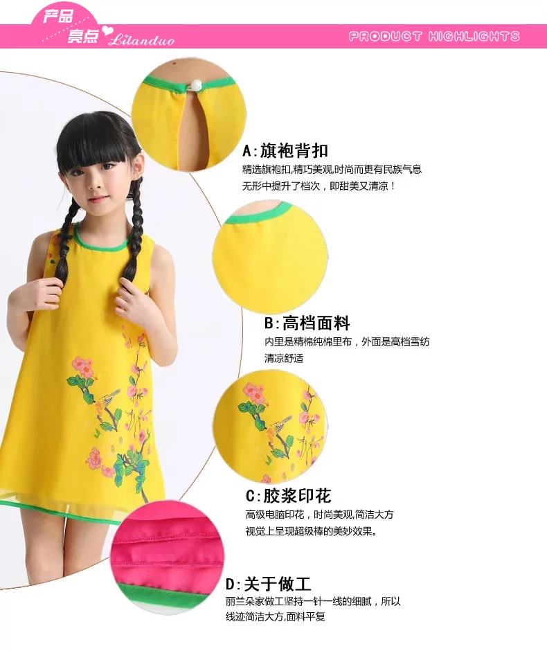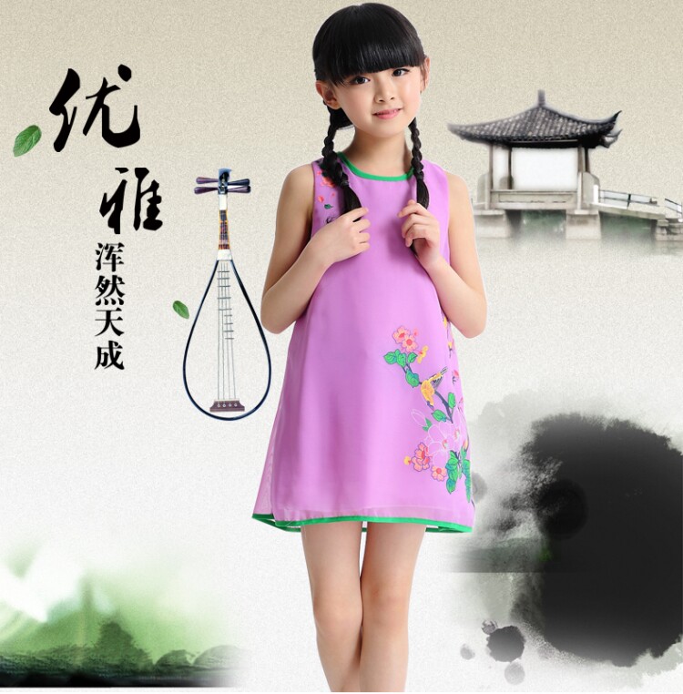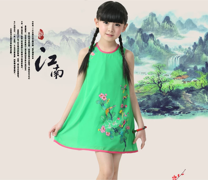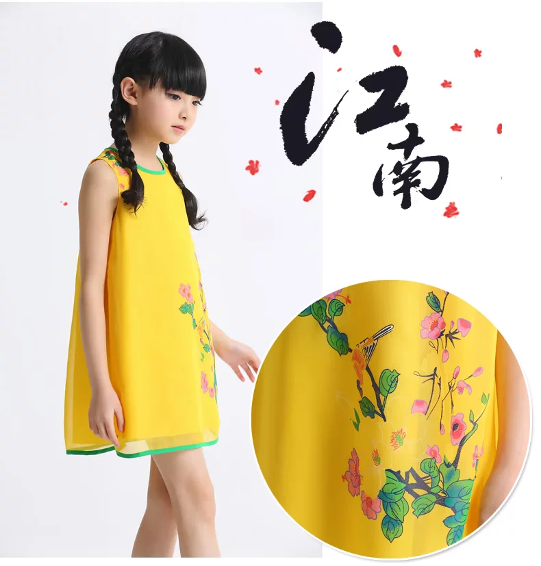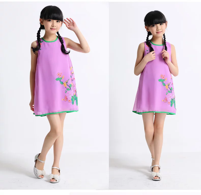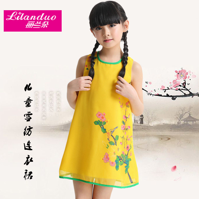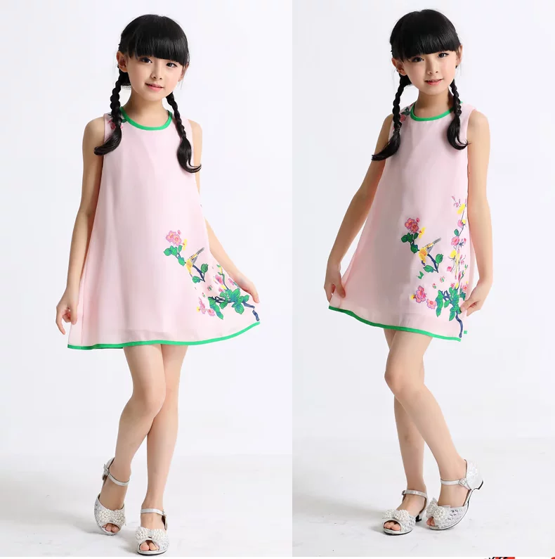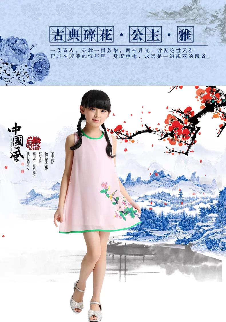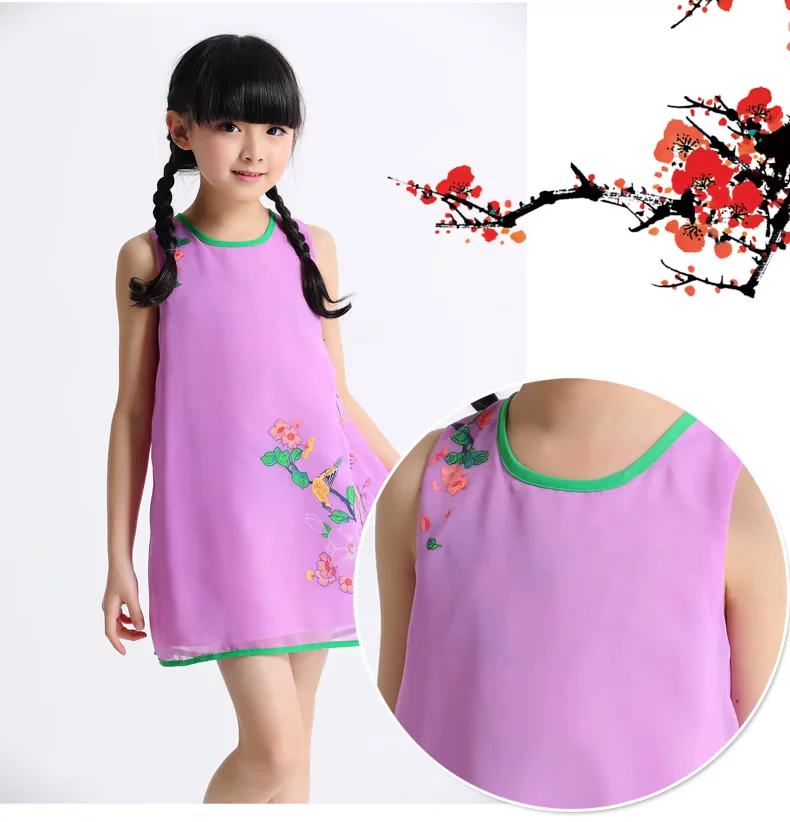 Шифоновая юбка на девочку, платье с рукавами без рукавов, мини-юбка, летний наряд маленькой принцессы, китайский стиль, подходит для подростков