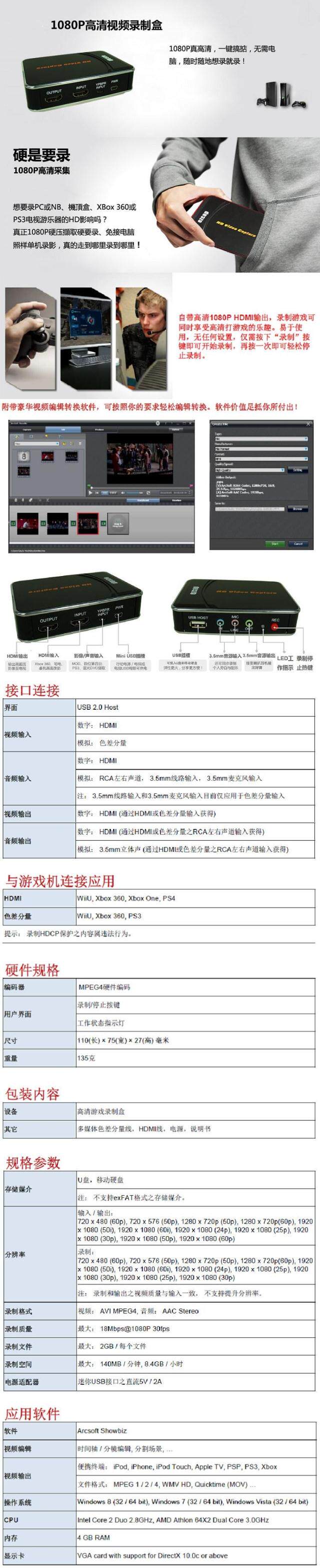 Нет компьютера, после доступа к источнику видео HDMI (DVD/DC/X-BOX/PSP и т. Д.), Подключите USB Flash или мобильный жесткий диск на карте сбора, нажмите кнопку, чтобы начать сбор HD-видео, поддерживать до 1080p/60 Гц ввода.