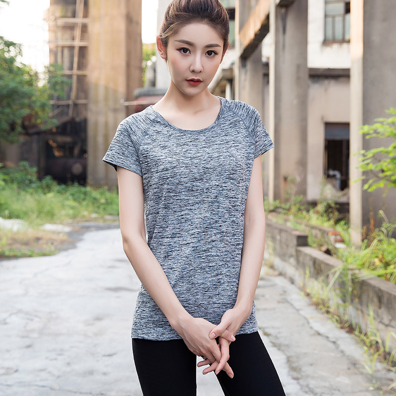Летняя спортивная футболка с коротким рукавом с круглым воротником для спортзала, быстросохнущая одежда для йоги, для бега