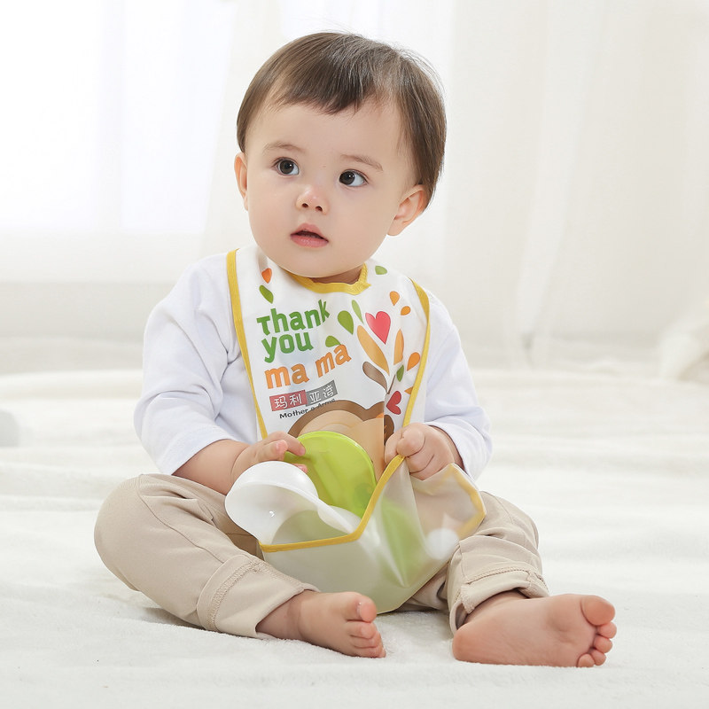 Детский водонепроницаемый пластиковый нагрудник для еды, слюнявчик для младенца, с карманом