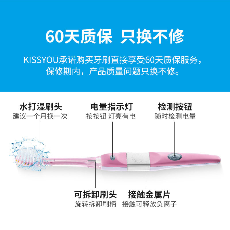 Япония поцелуй отрицательный ионный ионный зубной щетка Сильное удаление зубов до зубных пятен, чтобы предотвратить тон зубнепроницаемых недель, чтобы заменить супер тонкие волосы