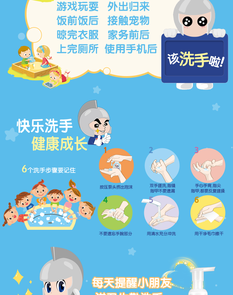 Антибактериальный детский санитайзер для рук из пены, мультяшный комплект