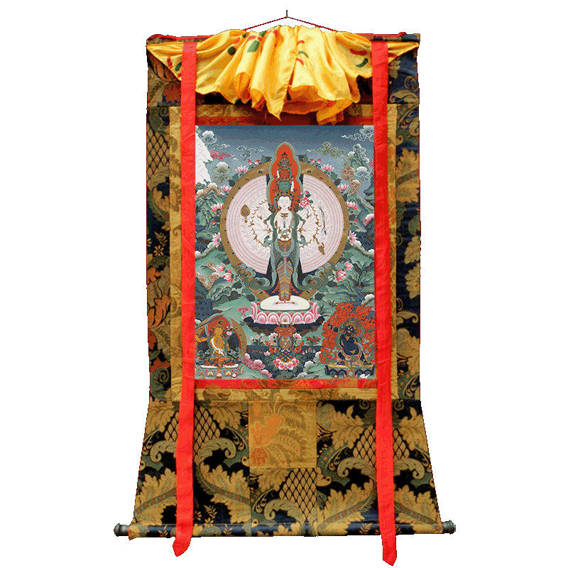 Тибетская тибетская тибетская тангка висящая живопись минеральная пигмент Будда Статуя тысячи рук и тысячи глаз Гуаньин Старая Тхангка украшение может быть прослежено