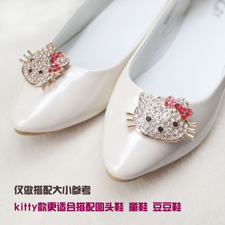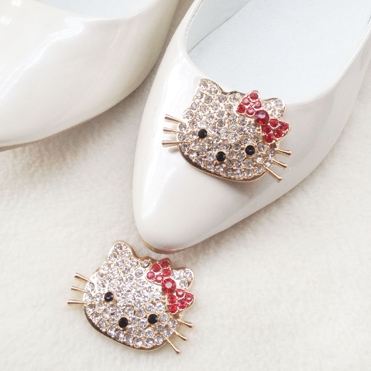 Обувь с кристаллами котенка и кота, милый мультфильм «Hello Kitty», детская обувь со стразами и пряжкой, обувь-шапочка, специальные аксессуары для обуви