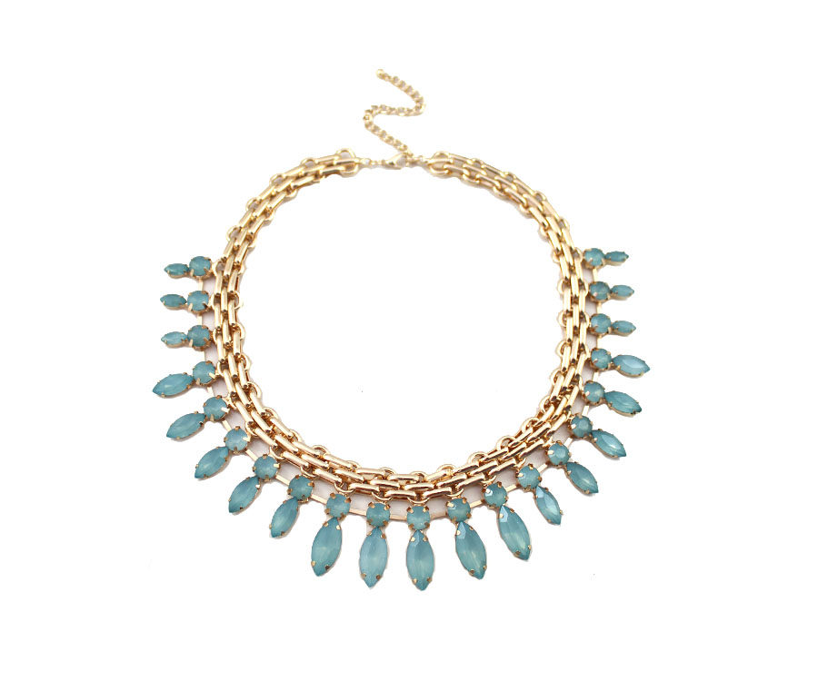 Модный свежий аксессуар, синее короткое ожерелье с кисточками, 99 карат, европейский стиль