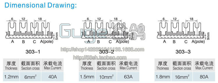 U-образный поток медного потока 3P-40A ABB пустая линия шины 3P расстояние 54 мм гнездо медная обмень