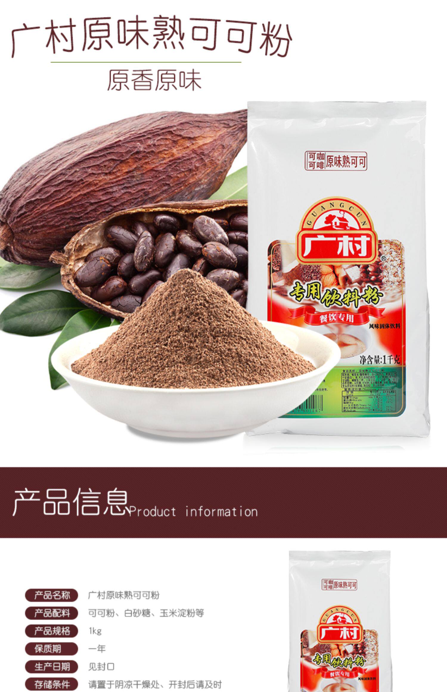 Гуанкун оригинальный приготовленный какао -порошок 1 кг горячий шоколадной порошок снежного аромата