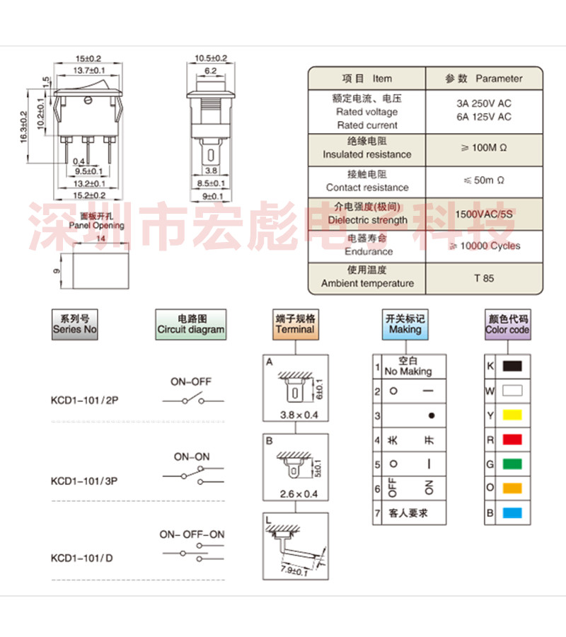 Переключатель типа корабля KCD11-101 Небольшой переключатель с изогнутой панель