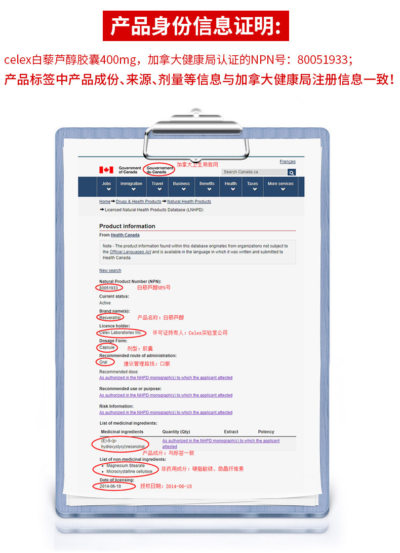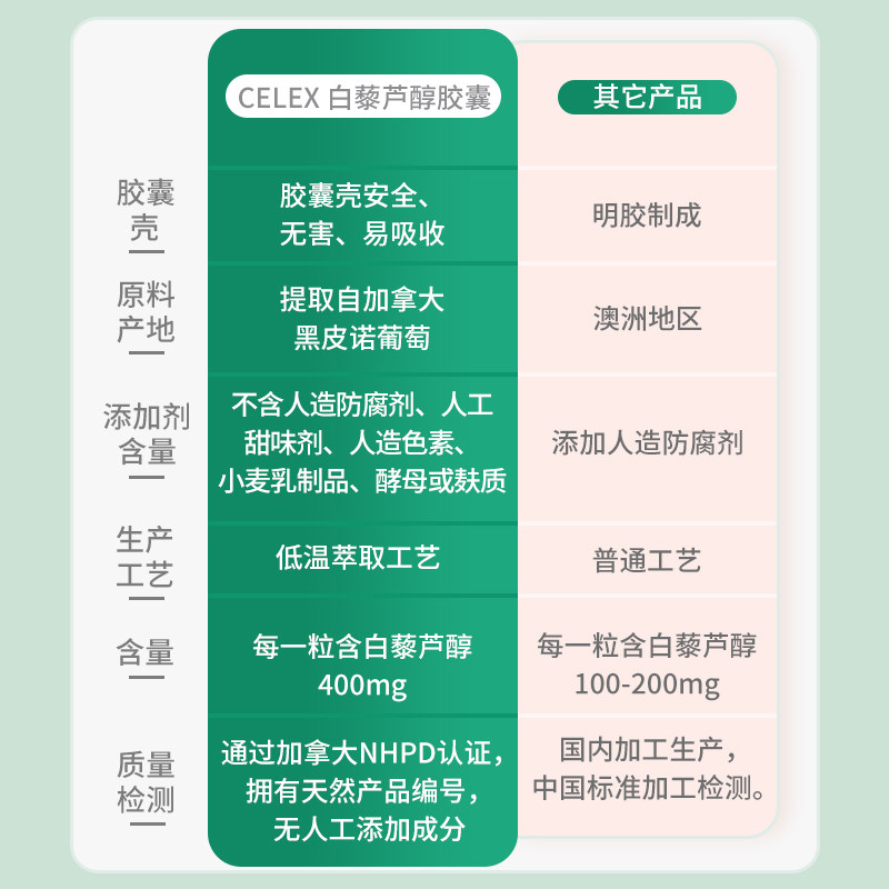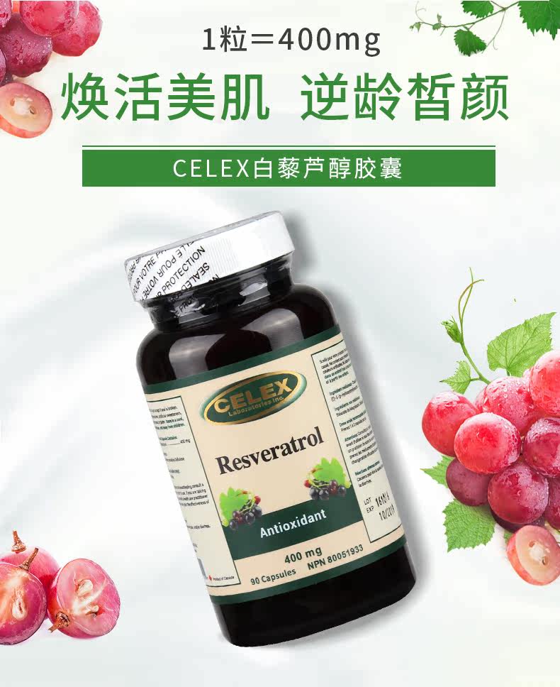 Канада импортировал Celex High -Contentent Resveratrol Capsule Feeen Essence Essence 3 бутылки из 3 бутылок