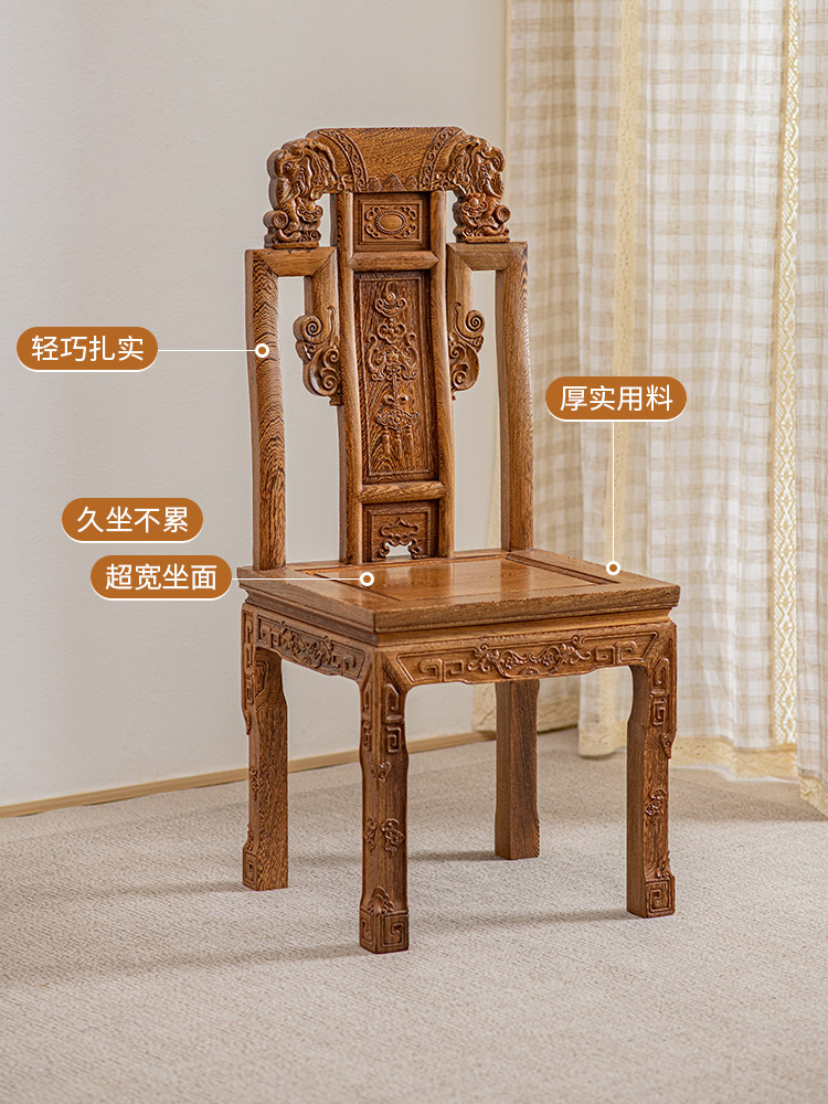 艺铭天下 Мебель из красного дерева, куриное крыло, деревянная голова слона, обеденный стул из цельного дерева, новый стул со спинкой в китайском стиле, антикварный бытовой официальный стул в шляпе