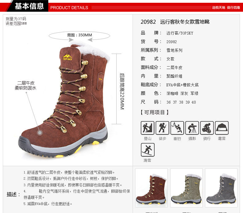 Флисовые сапоги, удерживающая тепло лыжная зимняя обувь, альпинистские ботинки, средней длины