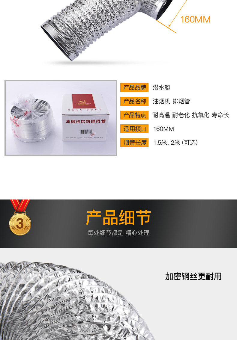 Подводная насосная капюшона выхлопная труба Водонагреватель дымовая труба Утолщенная телескопическая алюминиевая фольга выхлопная труба Анти -смок сокровища сокровища
