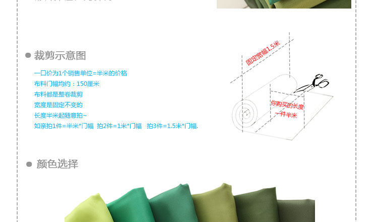 Зеленая ткань, 1.5м, градиент, 17 цветов