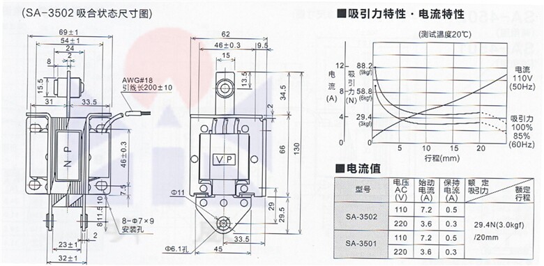 SA-3501 направление переменного тока Диспериона Электрическая толкатель 220V Слиня 3 кг 20 мм