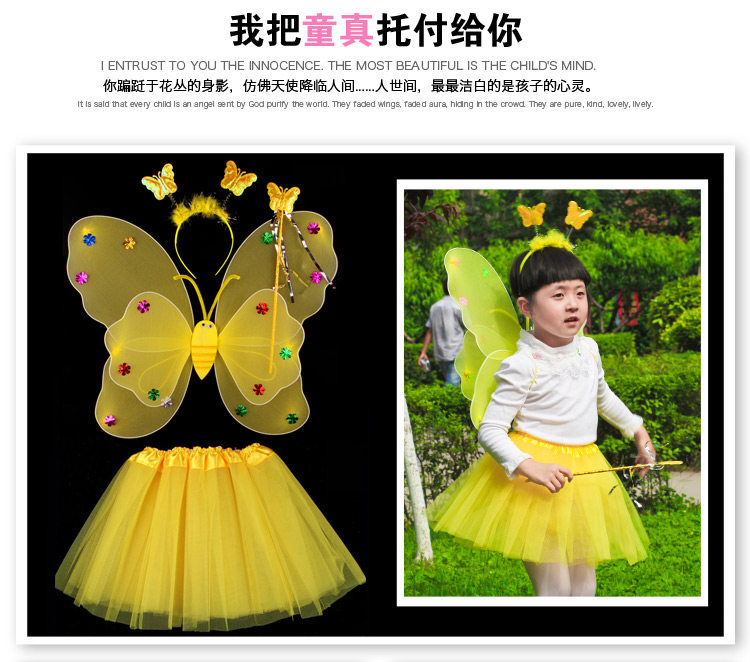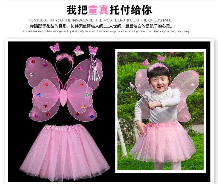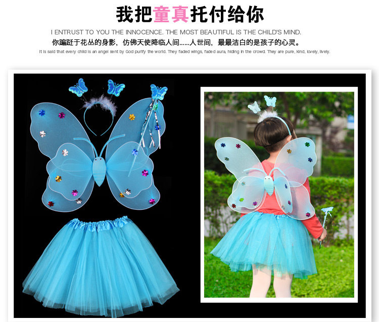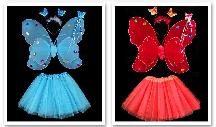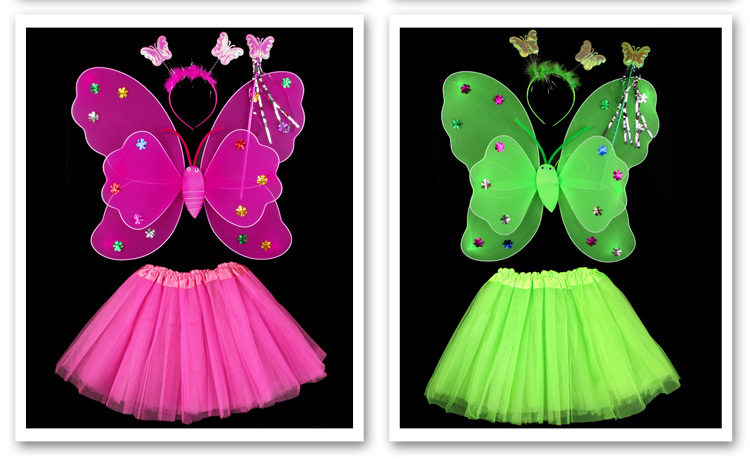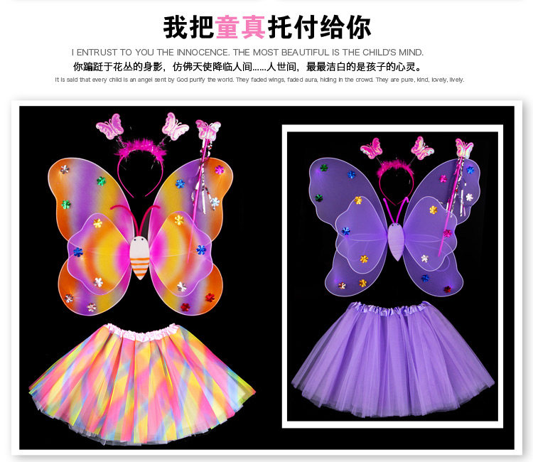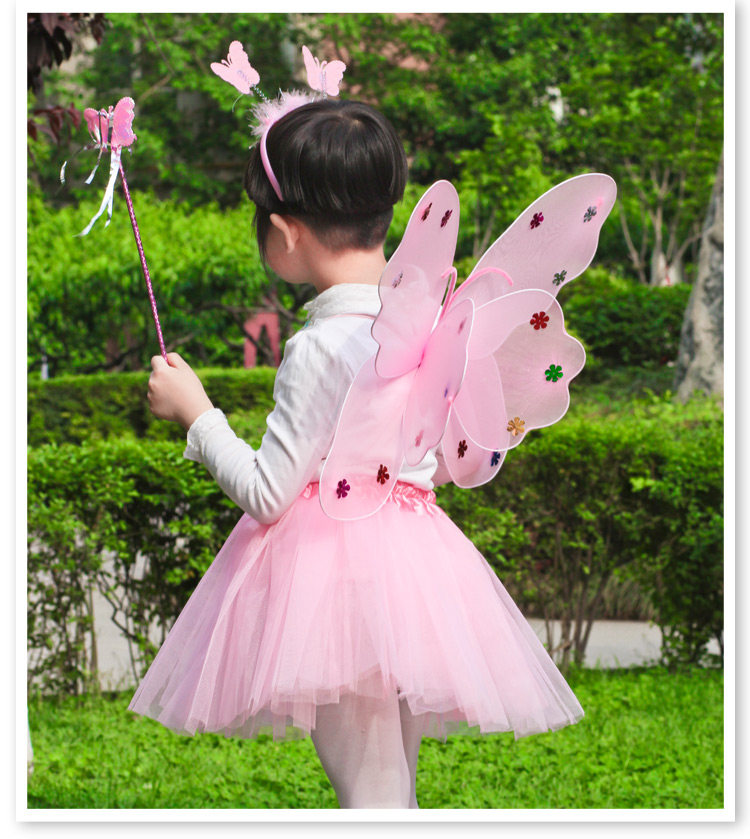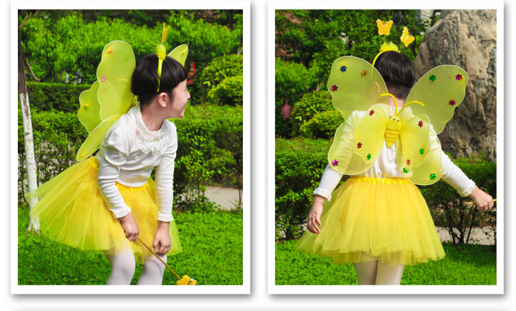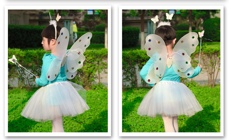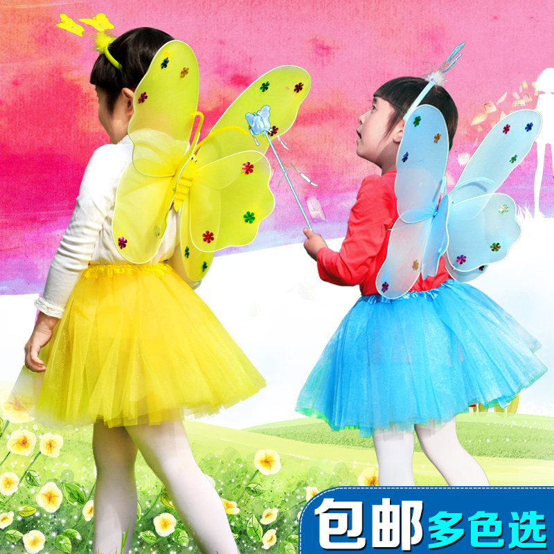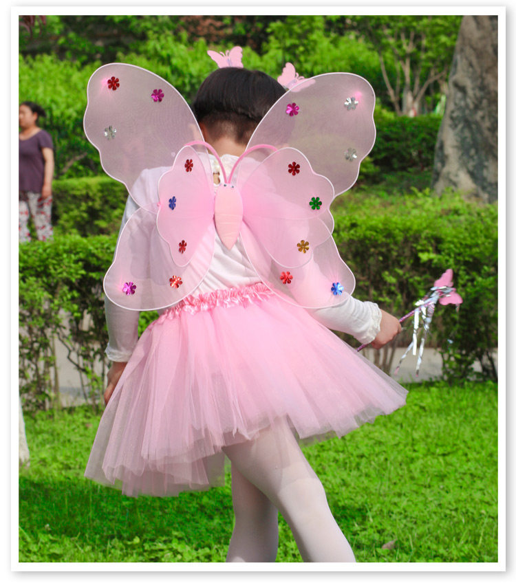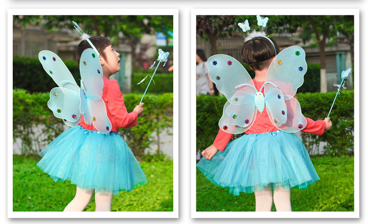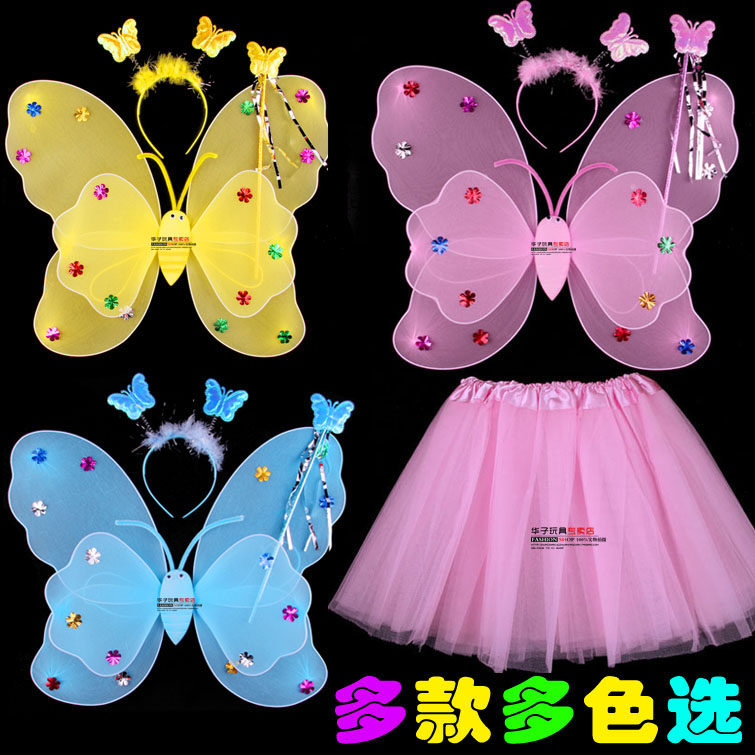 Светящиеся детские костюмы, реквизит, двухслойные крылья бабочки-ангела, комплект из трех или четырех предметов, не осыпающий золотой порошок.